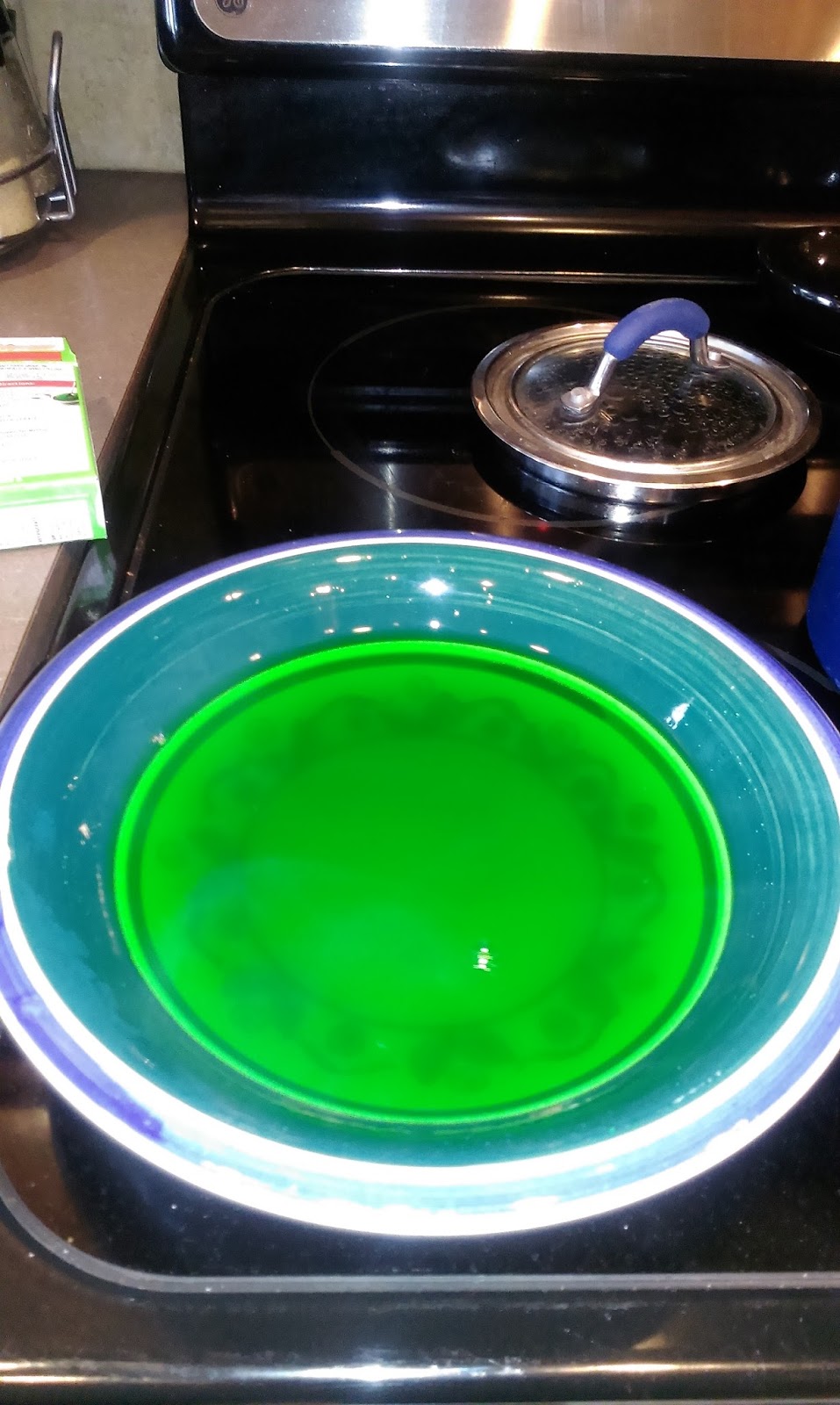 | If I had a better camera, you’d be able to see the thickness of the Jello dropping off my finger. When the droplets slightly stick to your finger, the Jello is ready. |