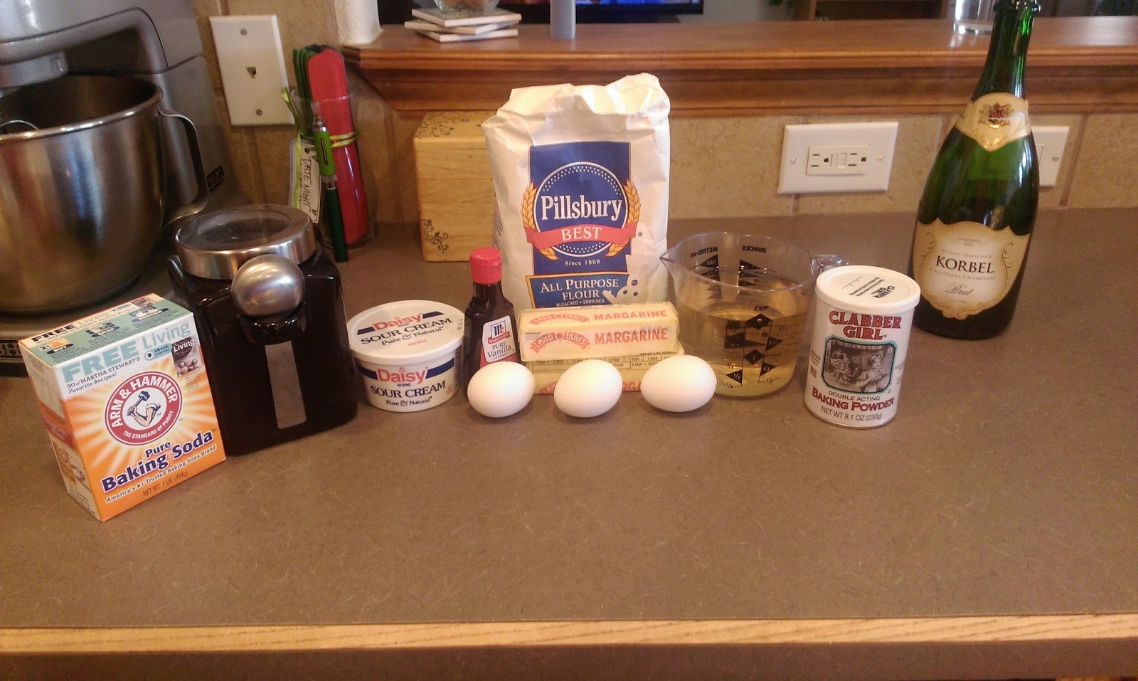 - 3/4 cup of champagne–get this out about an hour before you’re ready to bake so it isn’t freezing cold but just cooled so it mixes well with the other ingredients. No one wants warm champagne, you heathen.