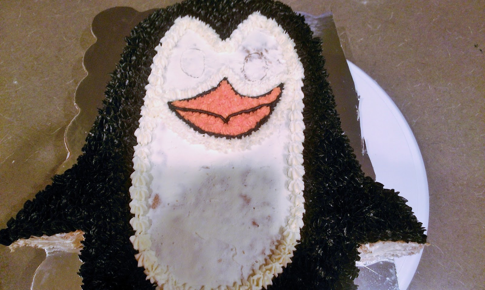 Today I turned 29 for what will be the first of many times. I could write an entire entry about how my body is slowly failing me, but that would be incredibly depressing for a cake blog. Cake should make people rejoice with happiness, and I firmly believe that is why it is never served at a funeral. Unless you want to fondly reflect on that pumpkin chunkin incident that turned fatal for poor Uncle Cletus, leave the cake for bonafide celebrations like birthdays or making it to work on time. I was trying hard to decide if my 29th birthday cake should reflect my age and maturity (ha) and be serious and delicate for once, especially considering my 30th birthday is ripe for a tombstone-themed cake. Thankfully, a little voice in my head spoke up (I know I probably need years of psychotherapy, but it’s my birthday, let me have this one). It told me do not go gentle into that good night–I need to embrace the youth that is still so prevalent in my soul, so I decided my cake needed to be fun and delightful. It needed to fill me with awe (or “aww”) like the cute and adorable cakes my mother used to make for me as young girl did. I thought about what I liked as a kid for a possible theme, but I’m not into Barbies, Power Rangers, or the Spice Girls anymore (that’s a lie- I still LOVE the Spice Girls, but wasn’t feeling up to the task of creating a cake-likeness of them). So then I decided to think about what fills me with delight every time I see it now. Minions obviously, 50% off signs, and really fat animals…which led me to think about one of the world’s most awkwardly adorable yet formal creatures- penguins. They combine both my love of cuteness and formal attire, so this was a no-brainer. I then thought about my favorite of all penguins, Kowalski from the Madagascar movies. A star was born.