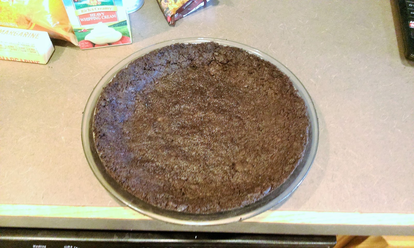Press the crust mix into a pie pan and freeze for about 20 minutes.