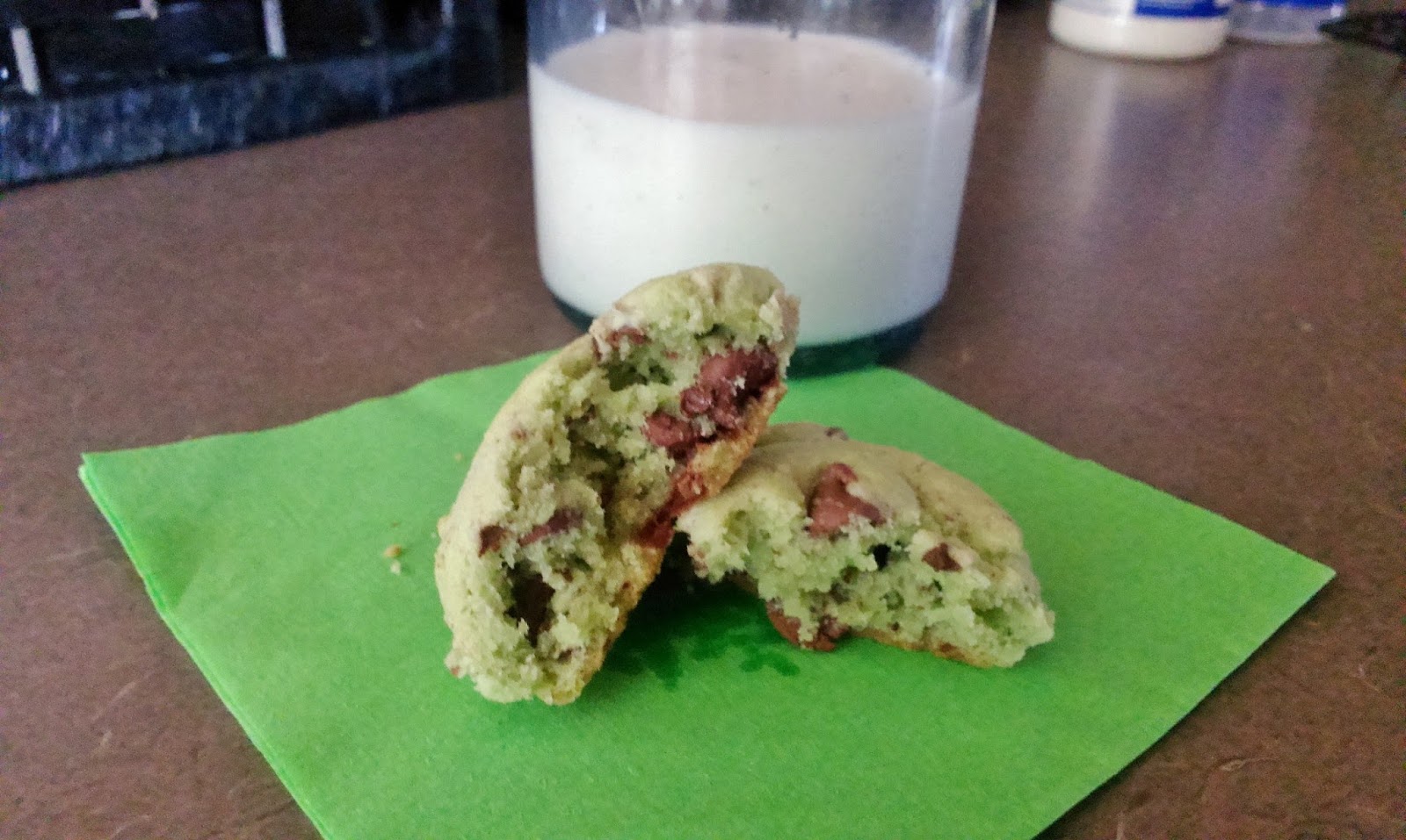 Are they for the Grinch or for the leprechauns? Who knows…because in either case, if you leave these out after midnight with a glass of milk, someone’s gonna eat them. And that someone is probably me. I’ve got a bit of a mint chip gutbomb happening between the dough I ate and cookies I ate once again in the name of blogging. Or something like that. But the good news is that these mint chip cookies require very minimal time and effort on your part but will be the hit of most Saint Patrick’s Day related treat festivities. I promise there’s no alcohol in these, so they’re even kid safe! I know, look at me, being a baker for the people.