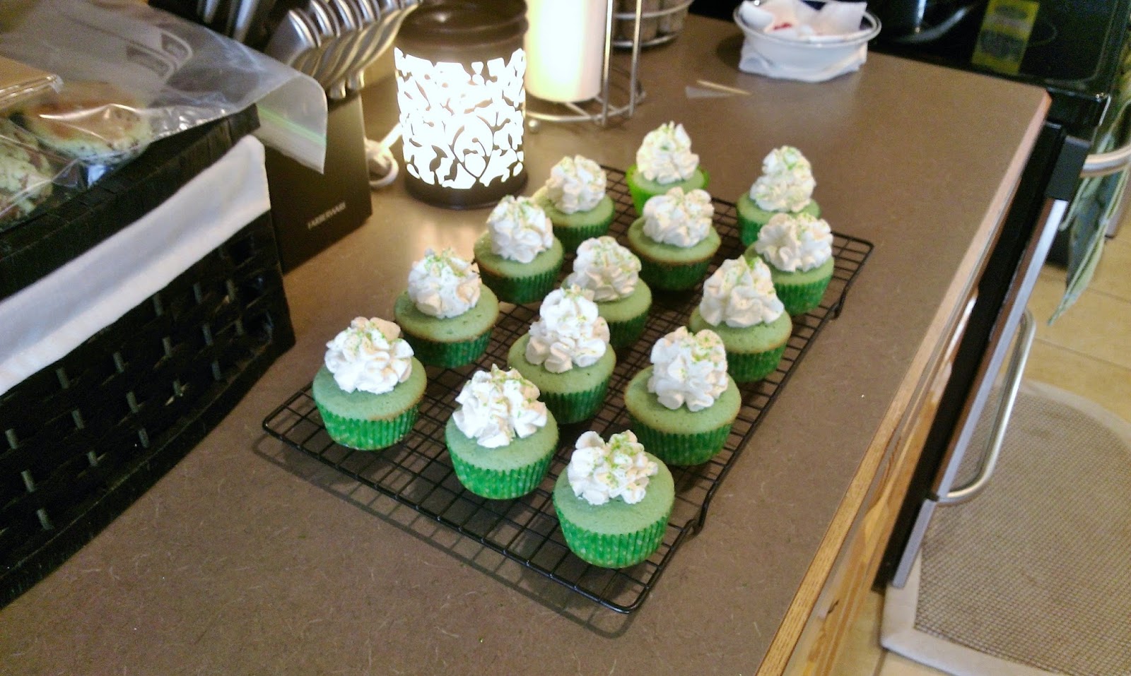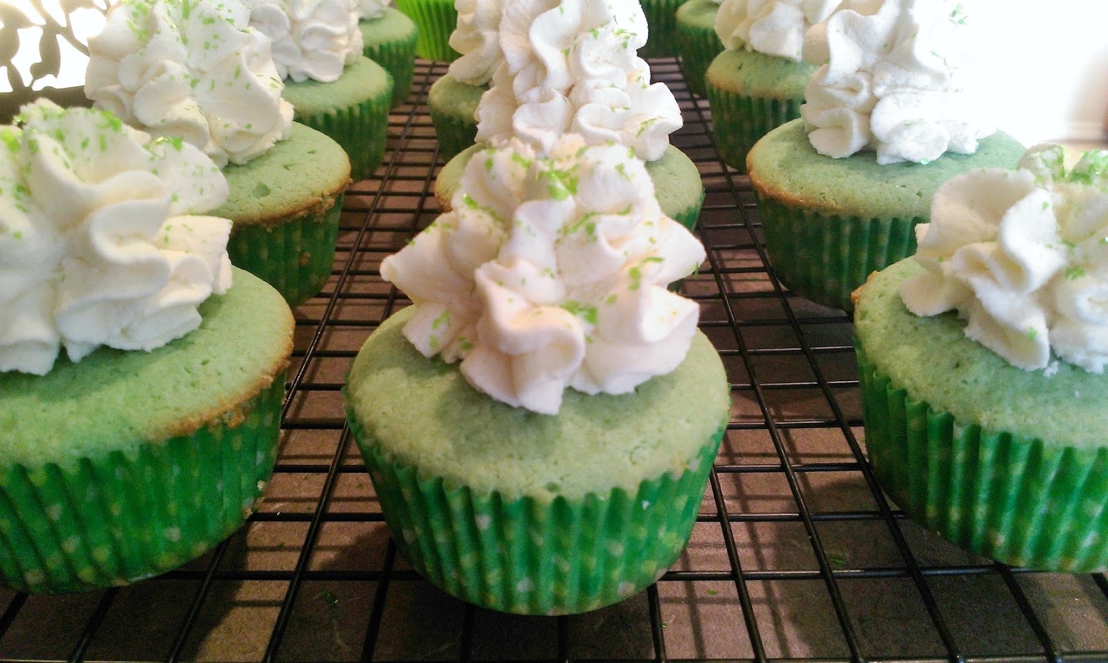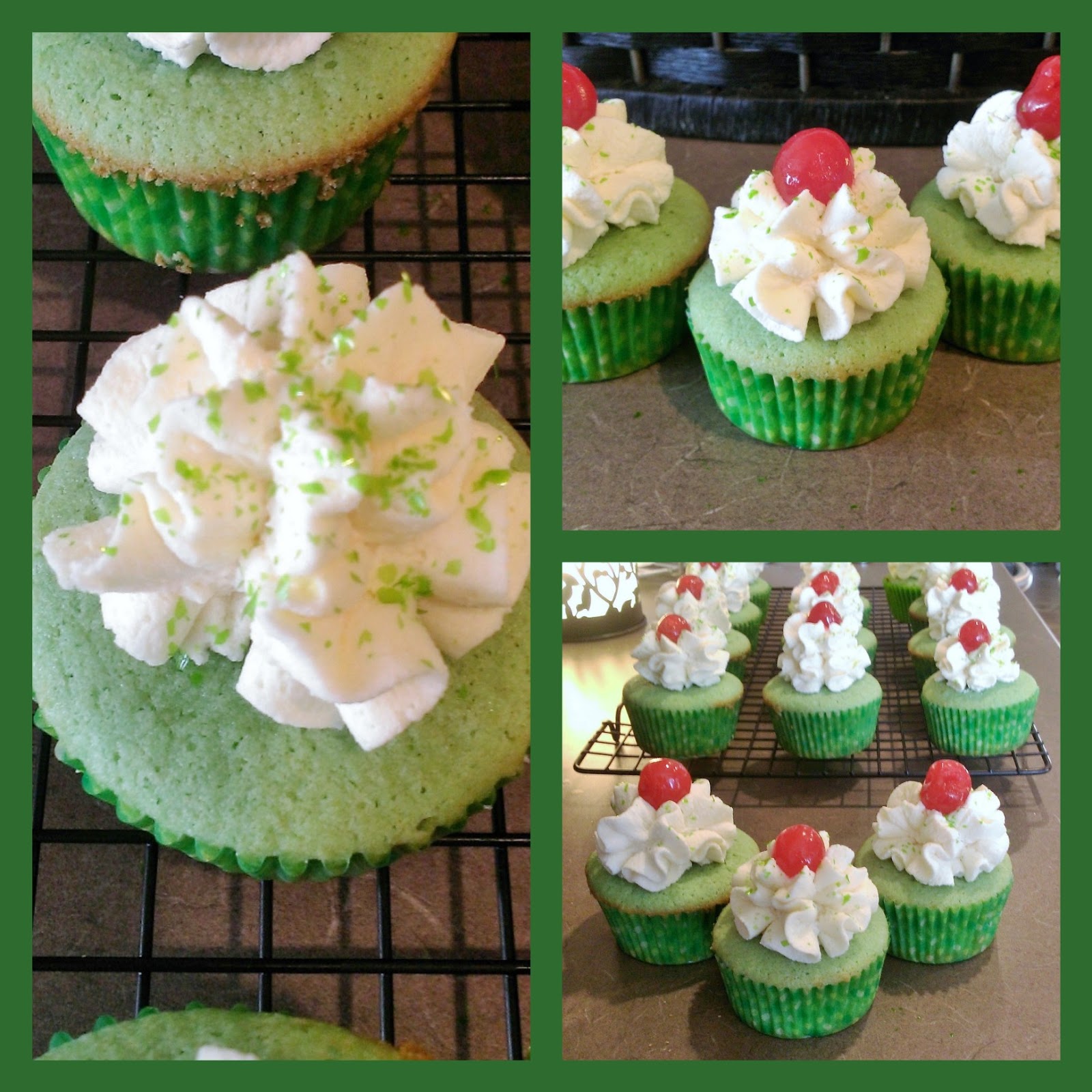 Now, I didn’t want to cover up how pretty and green these cupcakes are with a ton of boring, white frosting. So I took my bag and held it straight over the middle of each cupcake and piped a large mound of frosting.