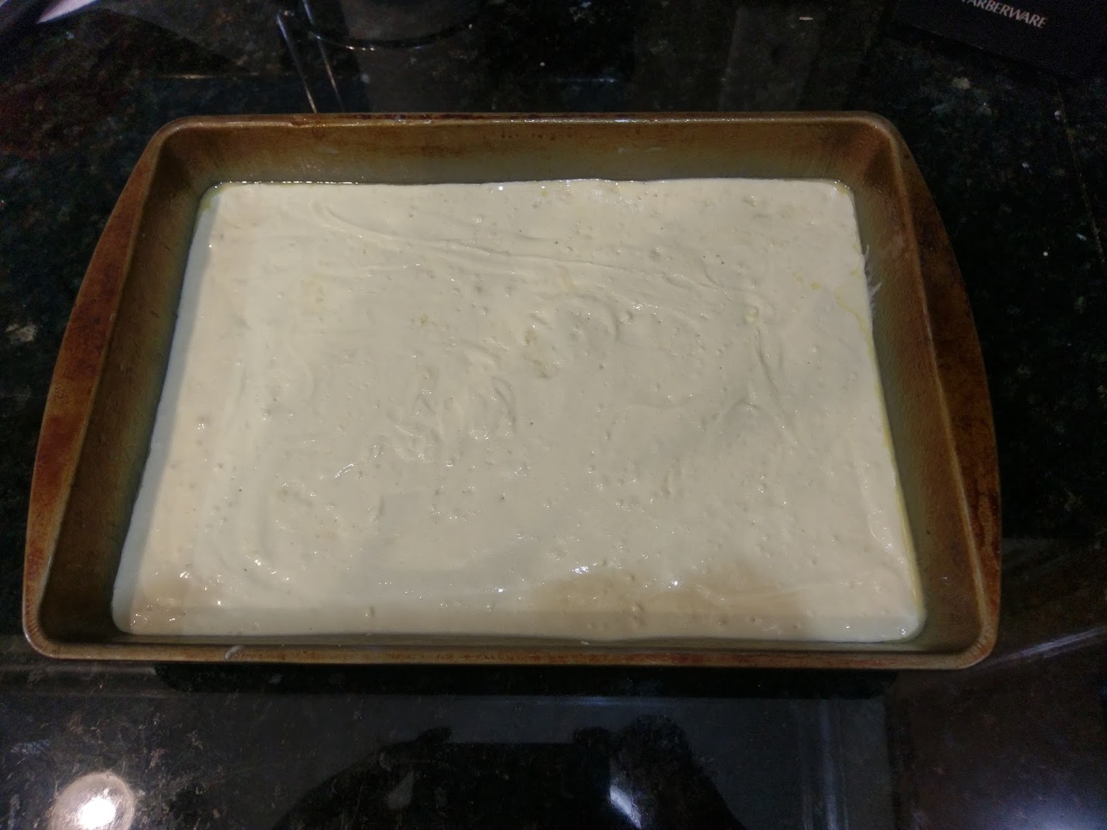 | There will be bubbles thanks to the soda’s effervescence, so don’t break your counter top slamming the pan to try to get the bubbles out. |