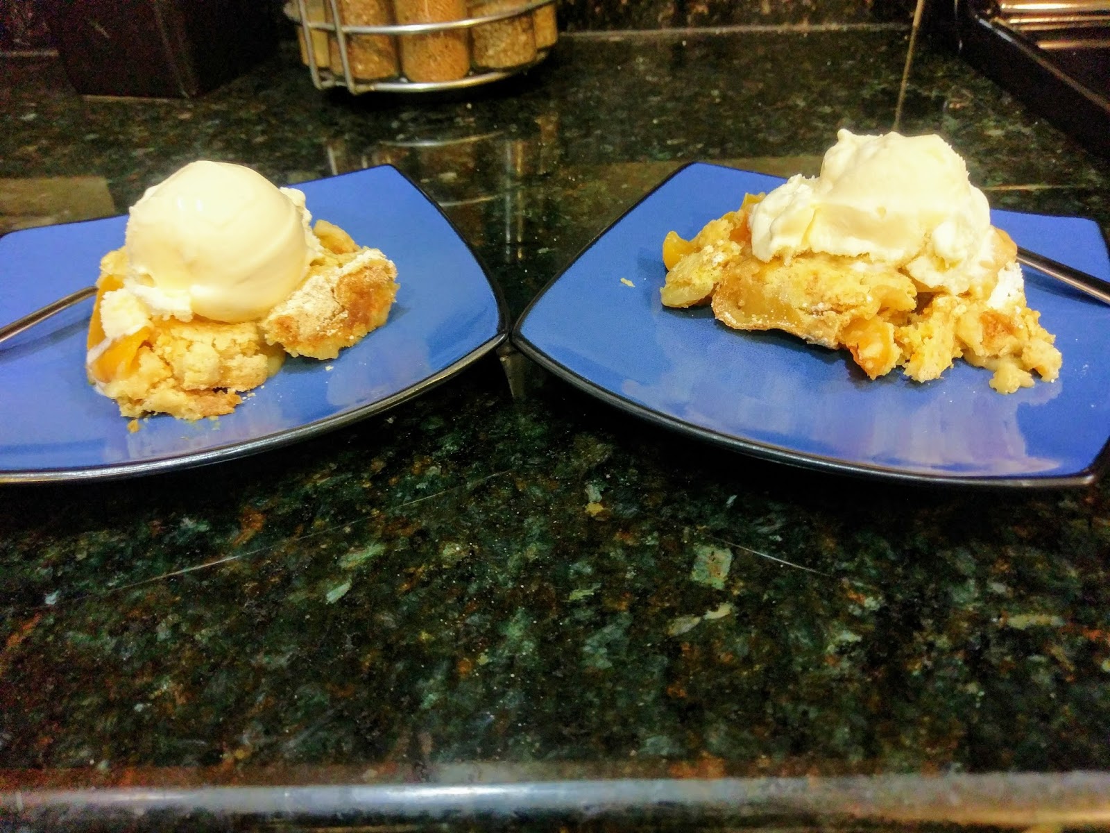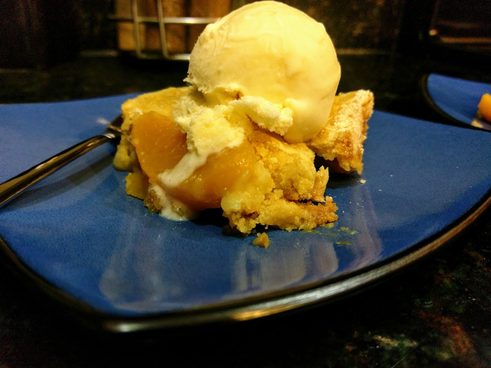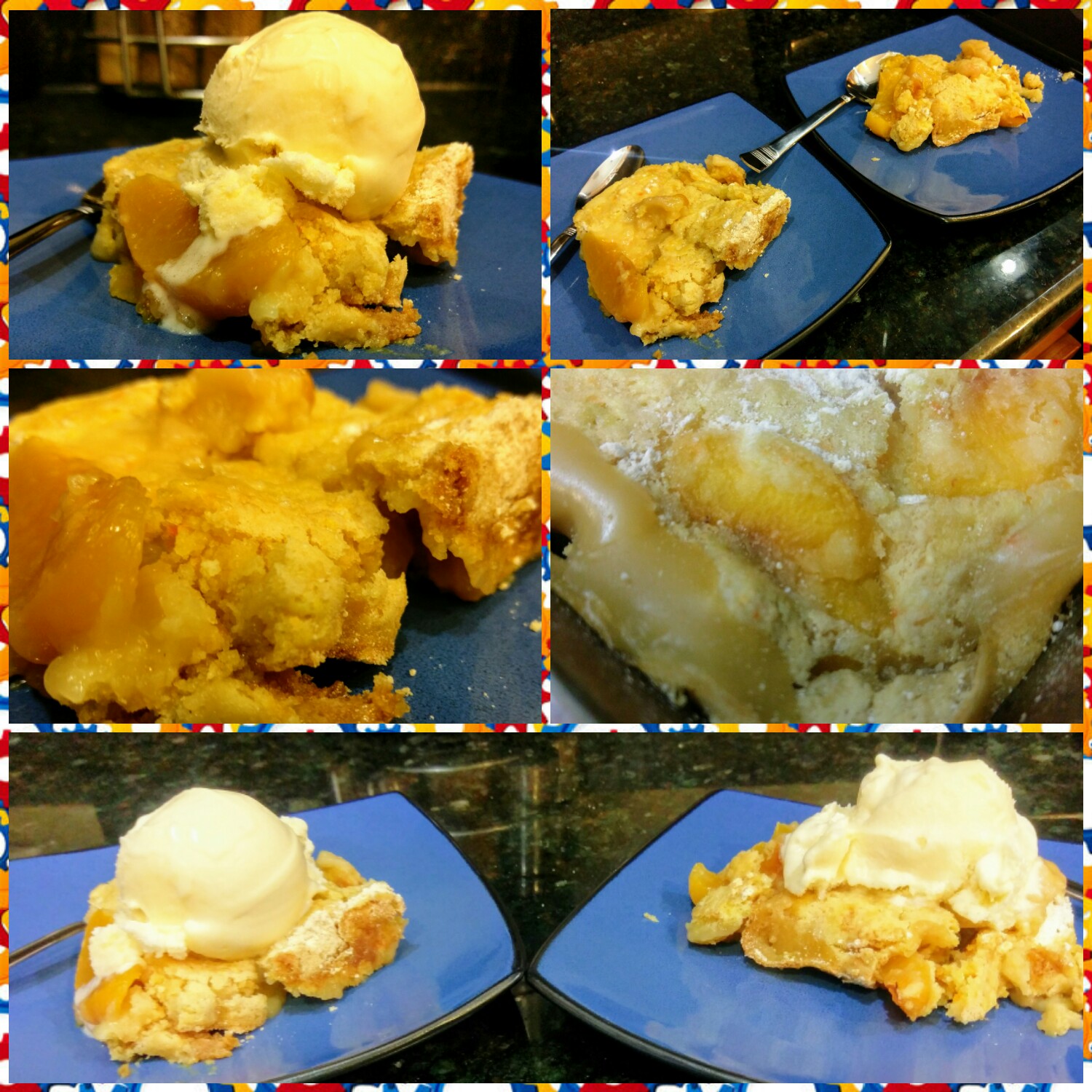 I had some spots of dry cake mix, but Dear God, my house smelled like the inside of what I imagine Texas heaven smells like. It took the personal restraint of knowing (again, as you do when you’re a Texan) that cobbler requires a 30-minute window to properly set up to keep me from taking a pint of frozen yogurt, dumping it directly on top of the pan of cobbler, and eating the entire thing in one sitting. Thank those lucky stars at night that are big and bright (Deep in the heart of Texas!) I was able to squash my ravenous hunger with that preexisting knowledge.