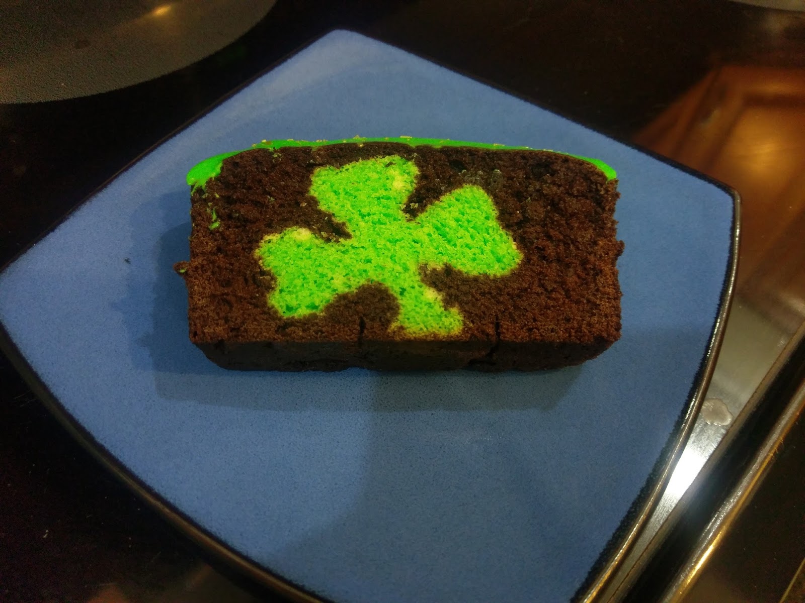 | At least two pieces of this cake will not include a shamrock surprise. So I guess the surprise is that there isn’t a surprise in those slices. Irony. |