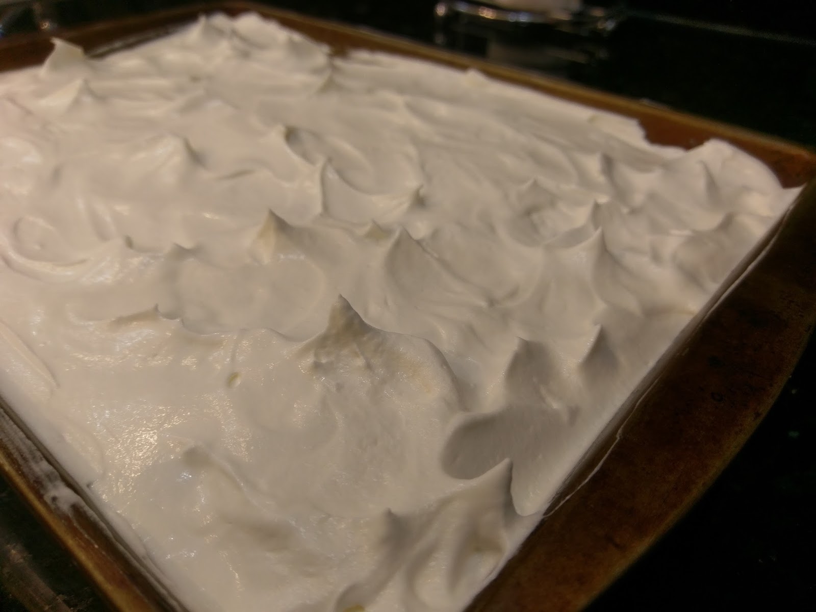I just used a spoon and the swirl and lift method to make my peaks. Then I placed my glorious creation into the fridge to allow the cake to set overnight, and, mostly, so that I wouldn’t eat it before my in-laws arrived. People like you more when you don’t eat cake without them.