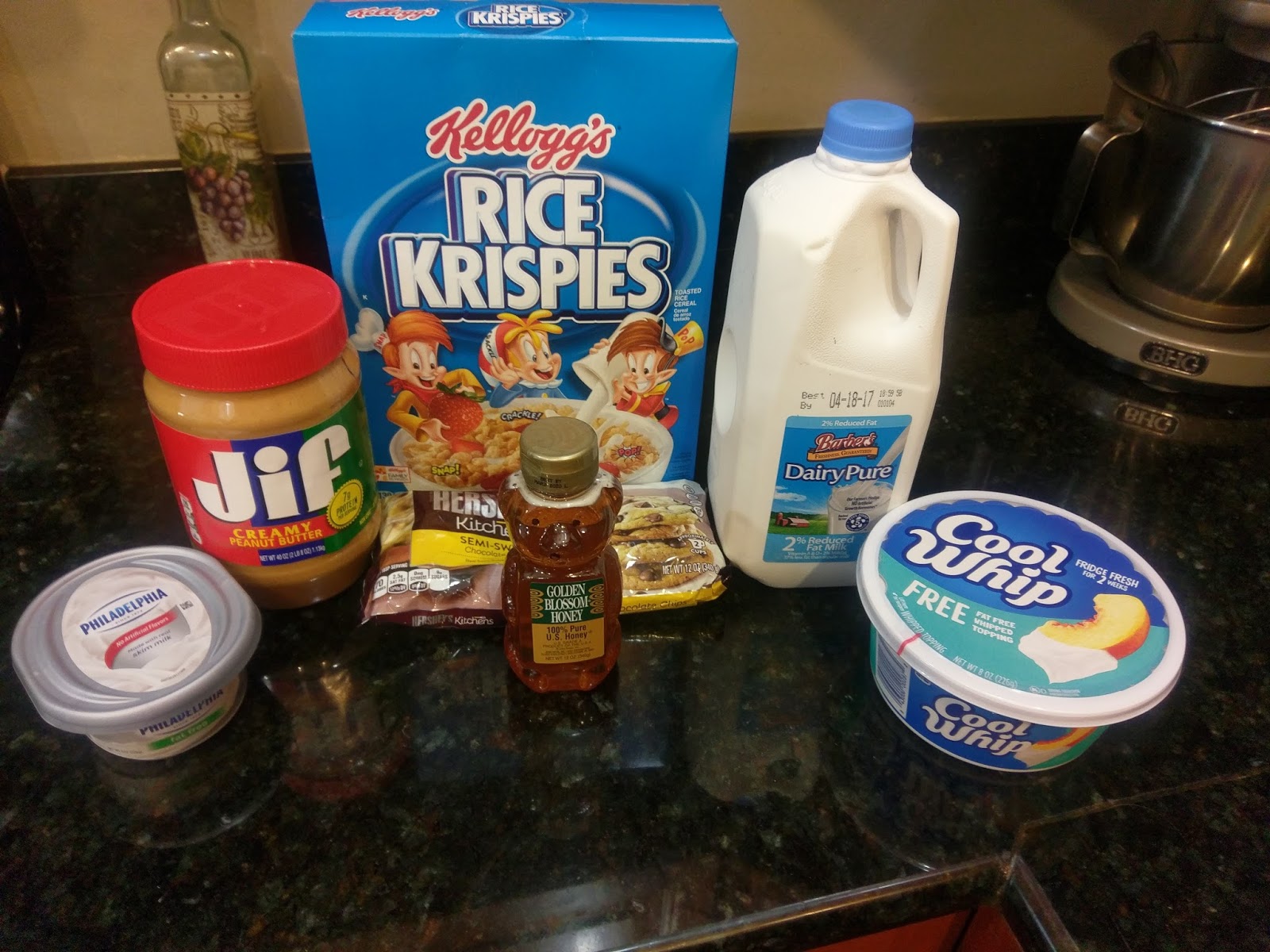 I’m fairly certain that Rice Krispies hasn’t changed their cereal box since the year I was born. I’m as classic as a box of Kellogg’s, baby. These bars are quick to make and require only a short list of ingredients. If you buy Jif in ten-pound jars and always have Cool Whip handy for those moments when a spoonful of sweetness means the difference between utter meltdown and total sanity, you’re already there (and my kind of person). To make, gather up: