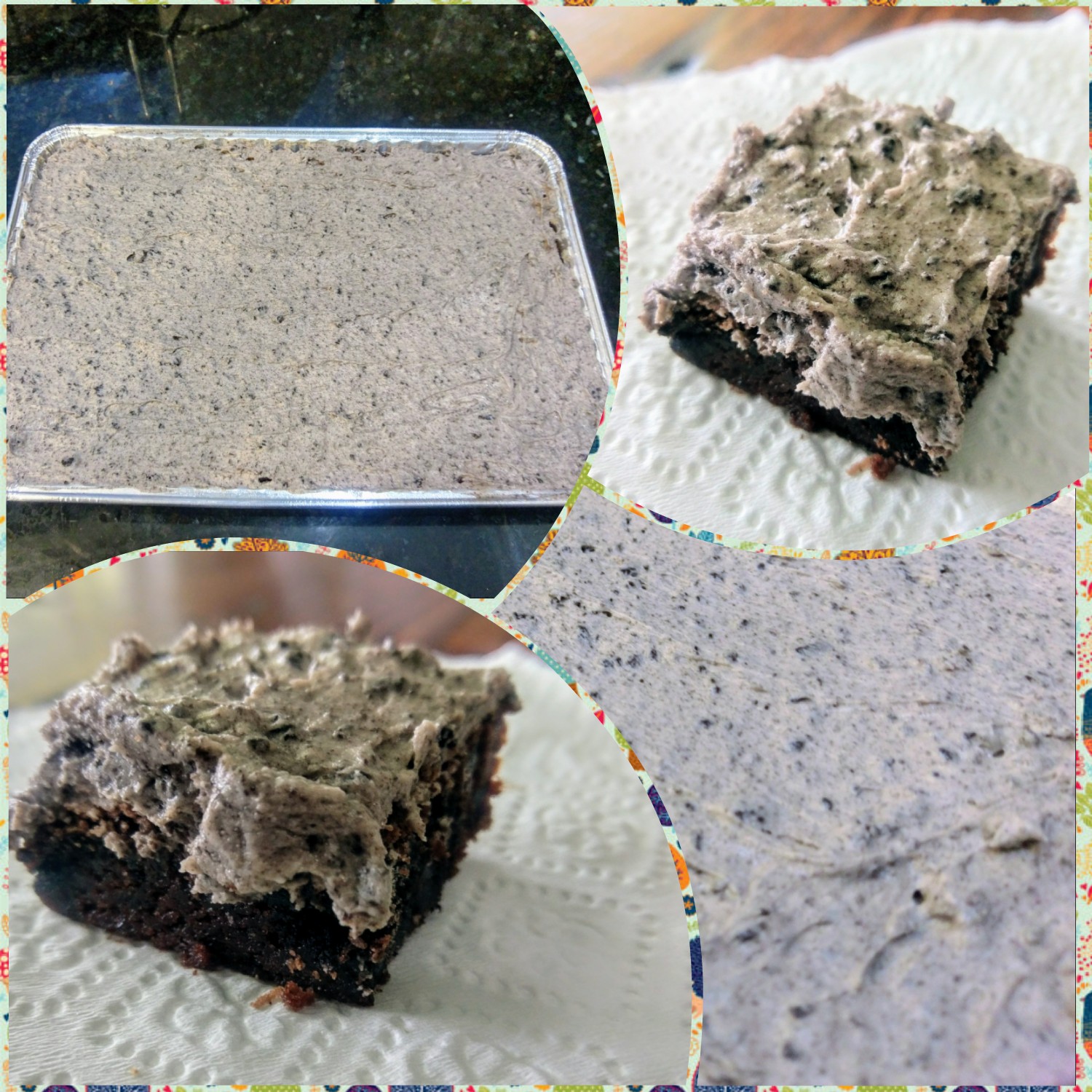 Let your cookies and cream brownies cool off on a cooling rack either on the counter or in the fridge depending on how impatient you are. While you’re resisting the urge to dive into the pan, get out your frosting ingredients:
