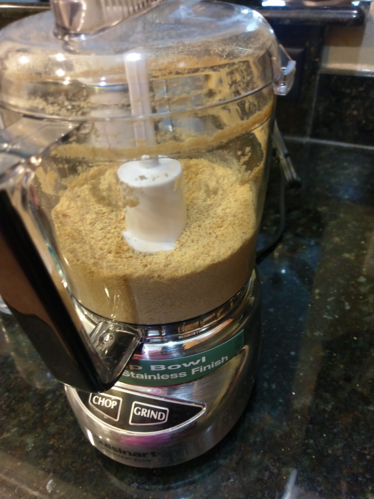 I have a 4-cup food processor that has saved my recipes from becoming a giant messy disaster time and time again. Either crush or process 6 sheets of graham crackers into a fine crumb.