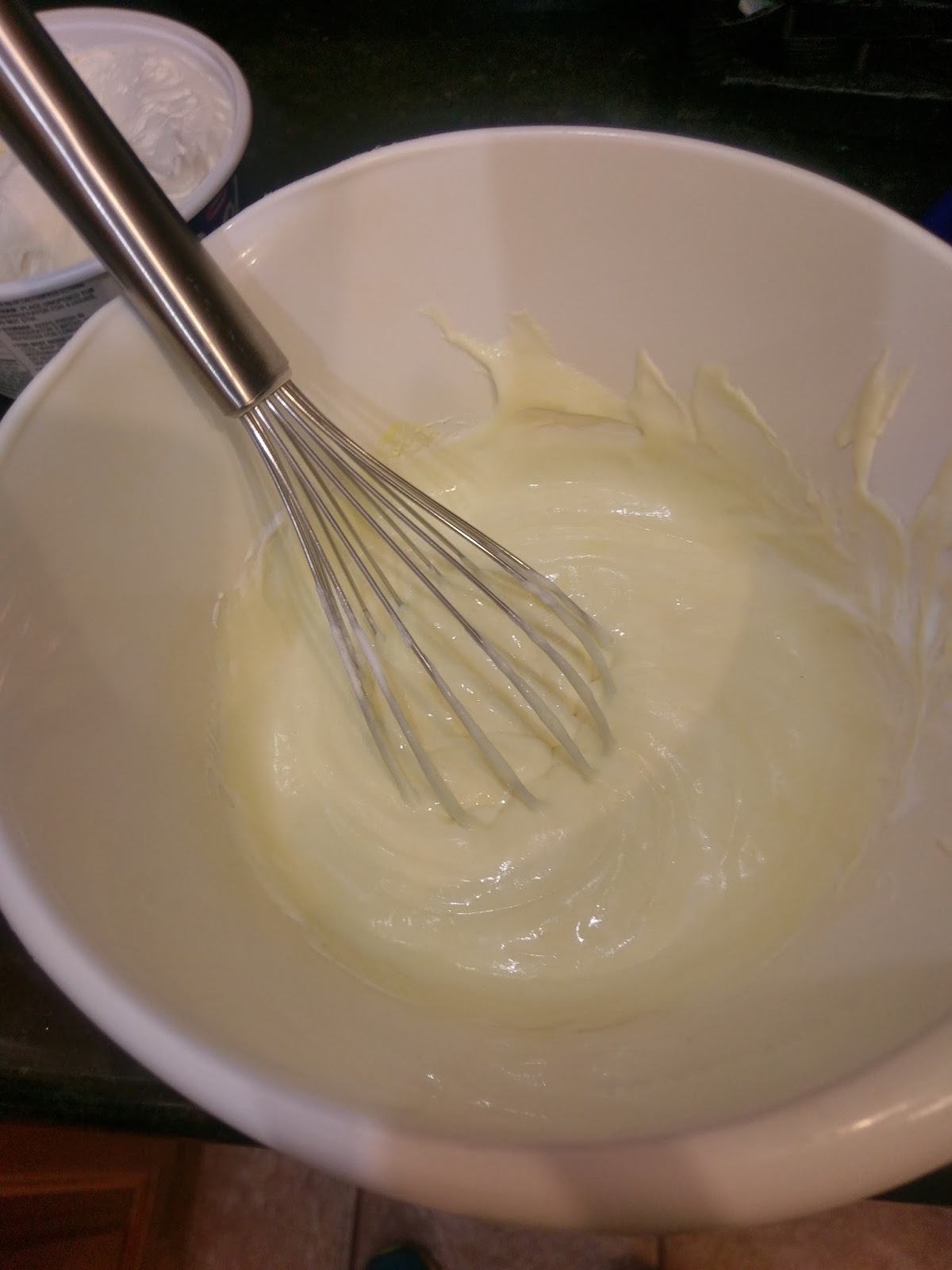 | Whisk in half a cup of Cool Whip Free and set aside. |