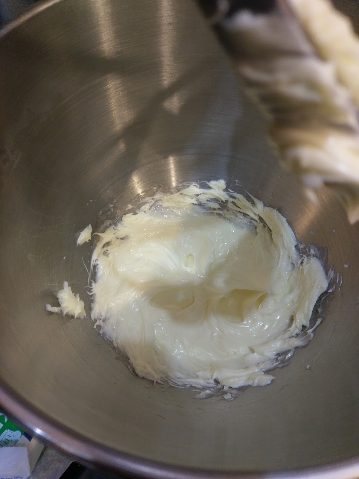 Start by plopping that soft, delicious butter into the bowl of your stand mixer and blend until smooth for a few minutes. Be sure to use the paddle attachment for your mixer.