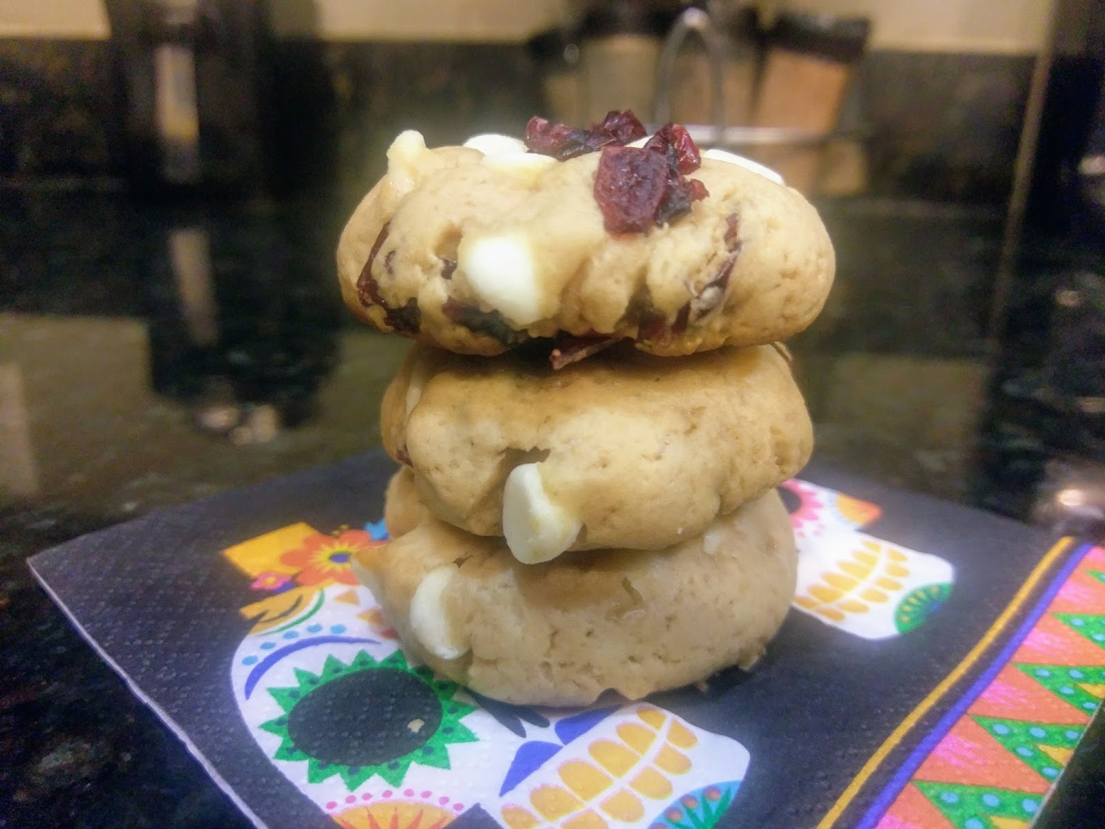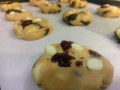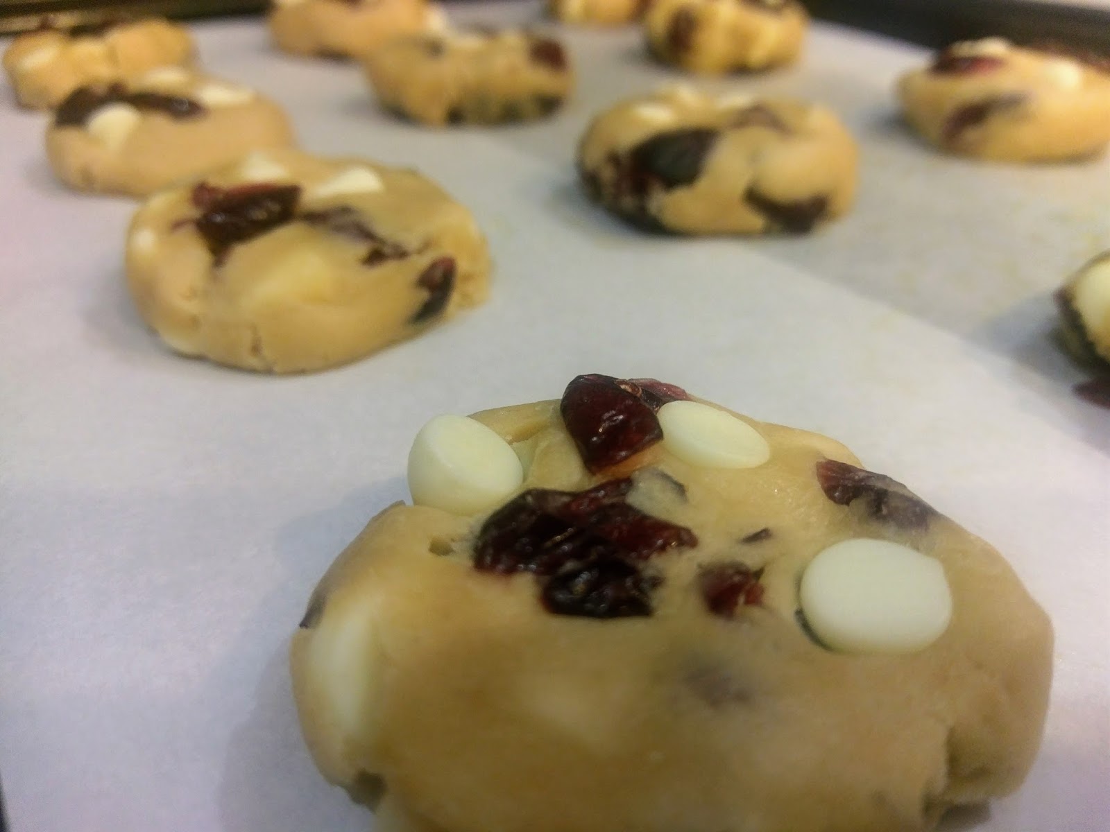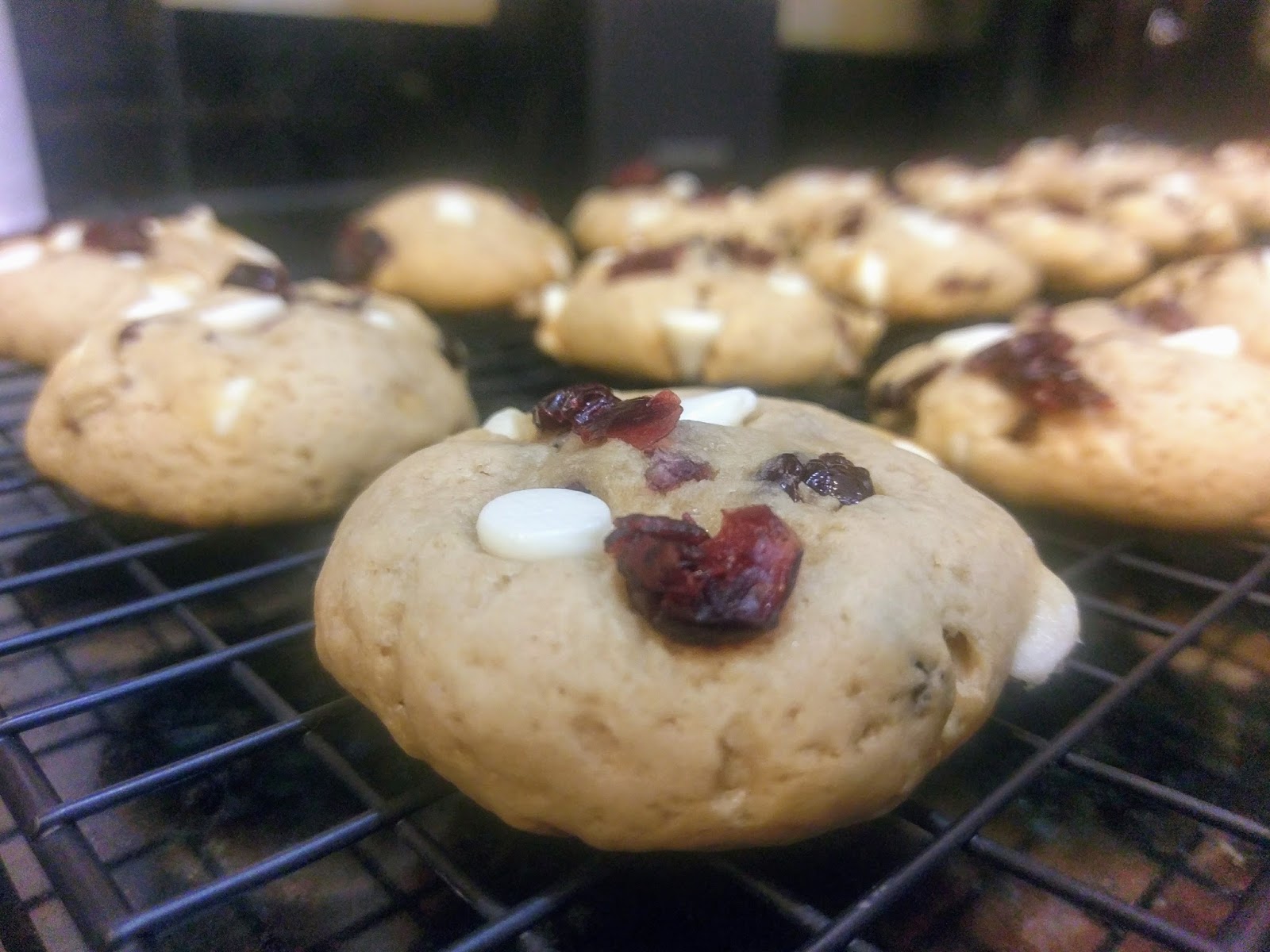 I haven’t made cookies since I spent an entire day working on those bewitching swirl Halloween cookies on October 1. It took forever, and quite frankly, my brand of perfectionism is of the lazy variety. I won’t have a tombstone one day, but if I did, it would read, “Worked Smarter, Not Harder.” I won’t be lacking in the tombstone department because I’ve found the secret to immortality; I just want to be cremated, thus bringing my work smarter, not harder mantra full circle. Anyway, spending ten hours baking cookies just isn’t something I was interested in doing again anytime soon. And I’m not gonna lie, when I think hand-held desserts, I typically go immediately to cupcakes. Taking a full-scale cake and bringing it down to bite-sized deliciousness without the need for a fork? Yep…once more, working smarter. So I needed a dessert that was quick, worked with staple pantry items, and for the sake of my husband’s sanity, didn’t involve an ounce of pumpkin spice (don’t worry, it’ll be back in the next blog). Along came a cookie I thought I’d ground test for holiday baking season: the cranberry white chocolate chip cookie.