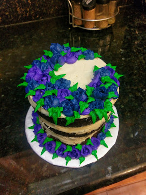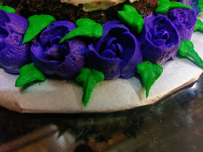 I was super frustrated by these Russian piping tips. “It’s so easy–anyone can use them.” In comes the baker with several years of piping and decorating experience under her belt, and no, anyone cannot use them. I wanted to do two-toned flowers in whites, blues, and purples, and followed directions on several Russian piping tip tutorial videos to do so and used a technique I had never done before and had zero luck with. I will stick to painting the inside of my piping bags with gel dye like I knew I should have because this actually works. I was also told to use extremely stiff frosting, but then only half my decorations were coming out of the piping tips at a time. It’s a miracle I got any of them to work at all, so lesson learned–just use regular consistency buttercream. At least my leaf game is on point: