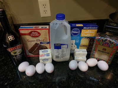 - Followed my cake jacking method and added an extra egg, subbed melted butter for oil and doubled the amount, and nixed the water, instead using half milk and half Disaronno to total the amount of water the box mix required (I think it was like 1 1/4 cup. I can’t remember specifically, so I can’t give you an exact amount. Just use half booze and half milk for whatever your box mix requires as a water replacement to really make the flavor shine).