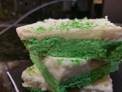 The pistachio cookie flavor mixed with the cream cheese frosting is savory meeting sweet in all the right ways. Warmed up, these bars are positively irresistible. You could probably keep these covered at room temp to keep the cookie bar soft, but I think everything is trying to kill me, so I opt to keep a cream cheese frosting in the fridge. My idea of living dangerously is using milk one day past its expiration date. What I lack in edginess, I make up for in baking and sass. My Irish husband is super pleased with these bars, and that’s what matters most. I won’t be drinking any green beer Saturday because I’ll be too busy double-fisting these pistachio cookie bars. There’s simply no room for beer when I’m busy turning the contents of my stomach green with delicious, pistachio-laden sweets. I can’t drink like the Irish, but I will eat most green things (except for you, peas–tiny little orbs of nastiness). I promise to bring a booze-filled, totally not in any way green dessert to you next week. Enjoy your Saint Patrick’s Day! ‘Til next time, my fellow eaters!