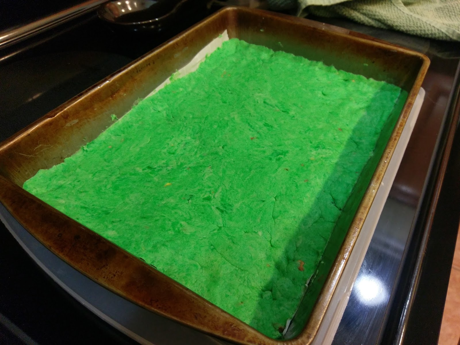 Oh yes, they’re green. They’re so green, they make most green vegetables embarrassed to be the same color. While I did lighten these up to make them healthier, I can promise you it’s not through zucchini or kale trickery. As if enchanted by the magical properties of a leprechaun (god, I’m so sorry, but I’m filled to the brim with terrible Saint Patrick’s Day puns this close to the holiday with no other outlet), a 9×13 pan of these will only set you back 219 calories for one ample-sized bar (15 servings total). I must admit the magical properties that made this possible were Swerve’s two varieties of sugar replacement. And butter. All of the butter.