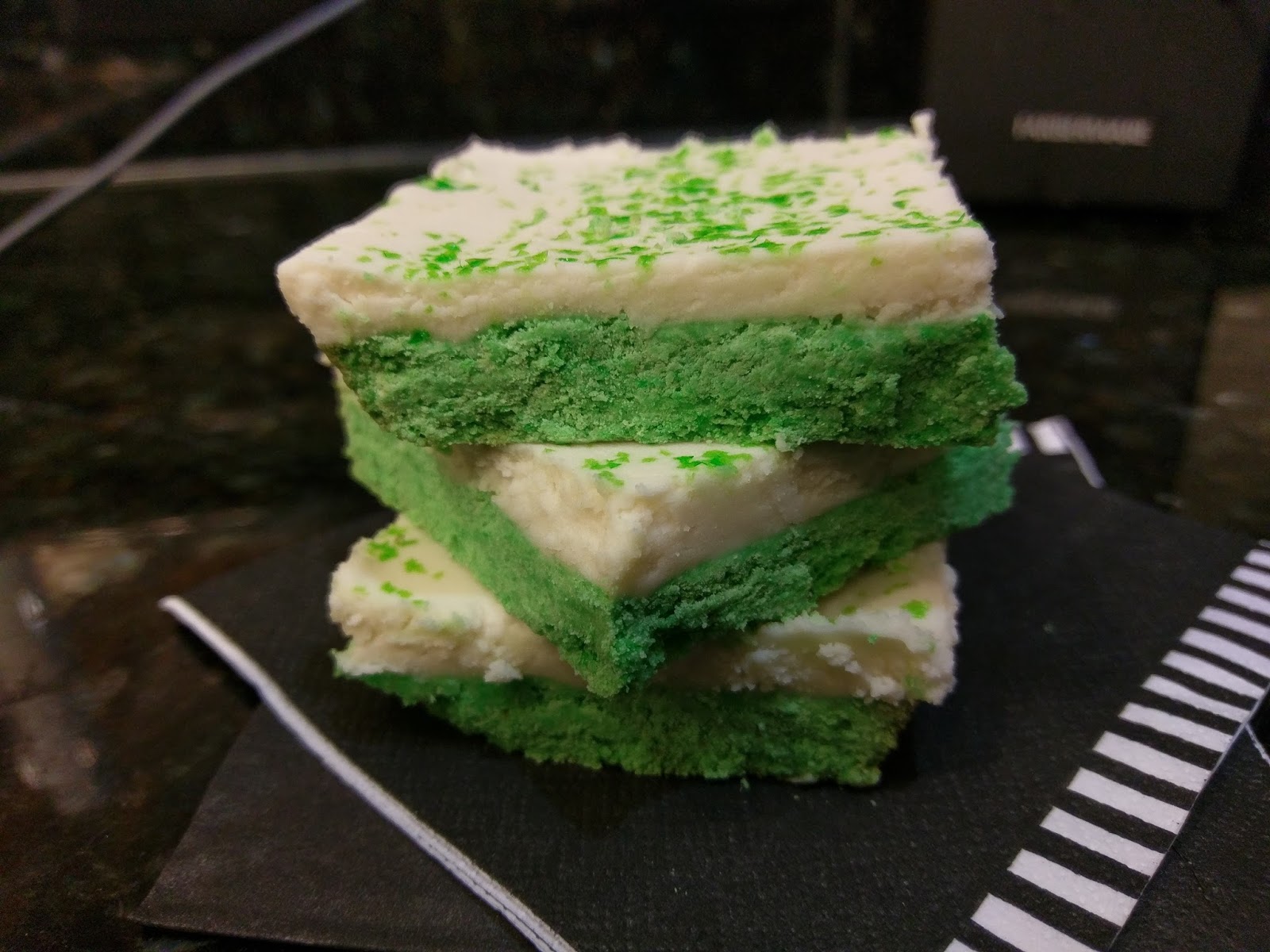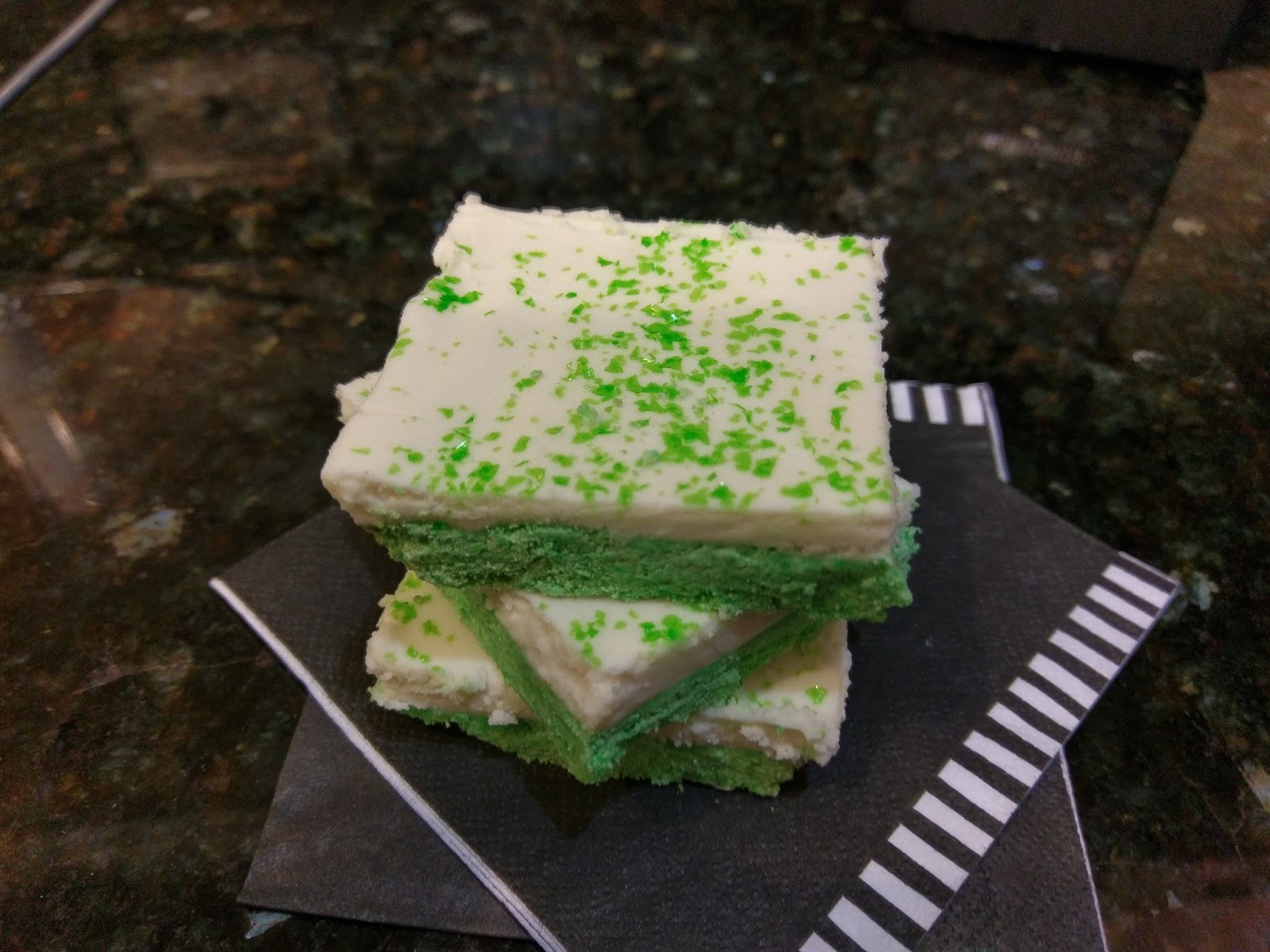 You can call it a day here if you’re thinking there’s too much green on these bars already, but at this point, just take it the extra mile and garnish with pretty green sprinkles: