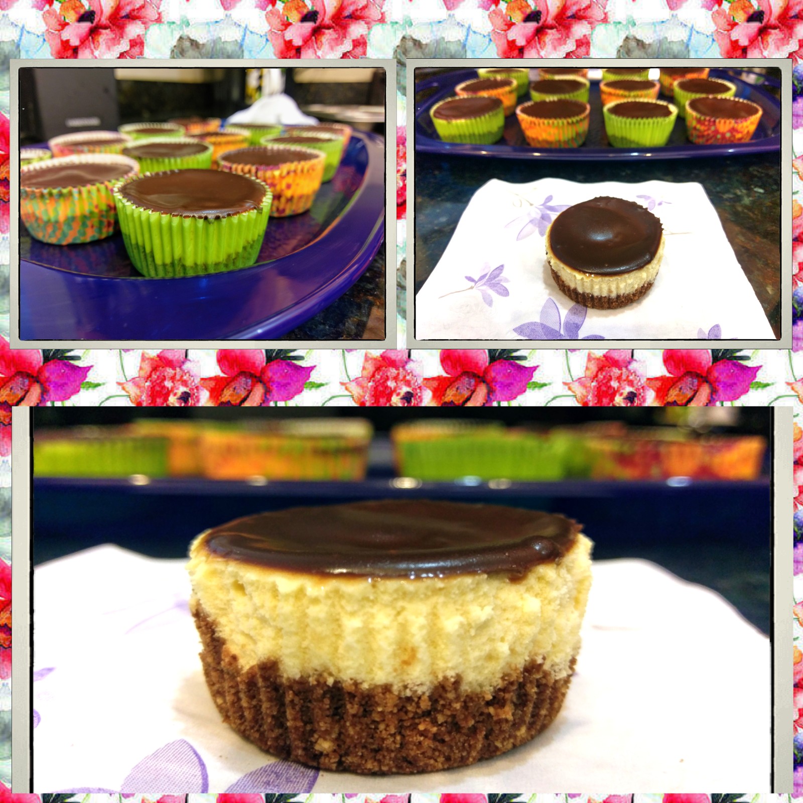 Let your cooked cheesecakes cool on a cooling rack COMPLETELY before even thinking about the ganache. Pour yourself a glass? of Baileys and whatever Baileys goes with when it isn’t in food, savor, bide your time, sing karaoke, whatever. Just don’t touch these until they’re room temp. Leave them in the muffin tins!