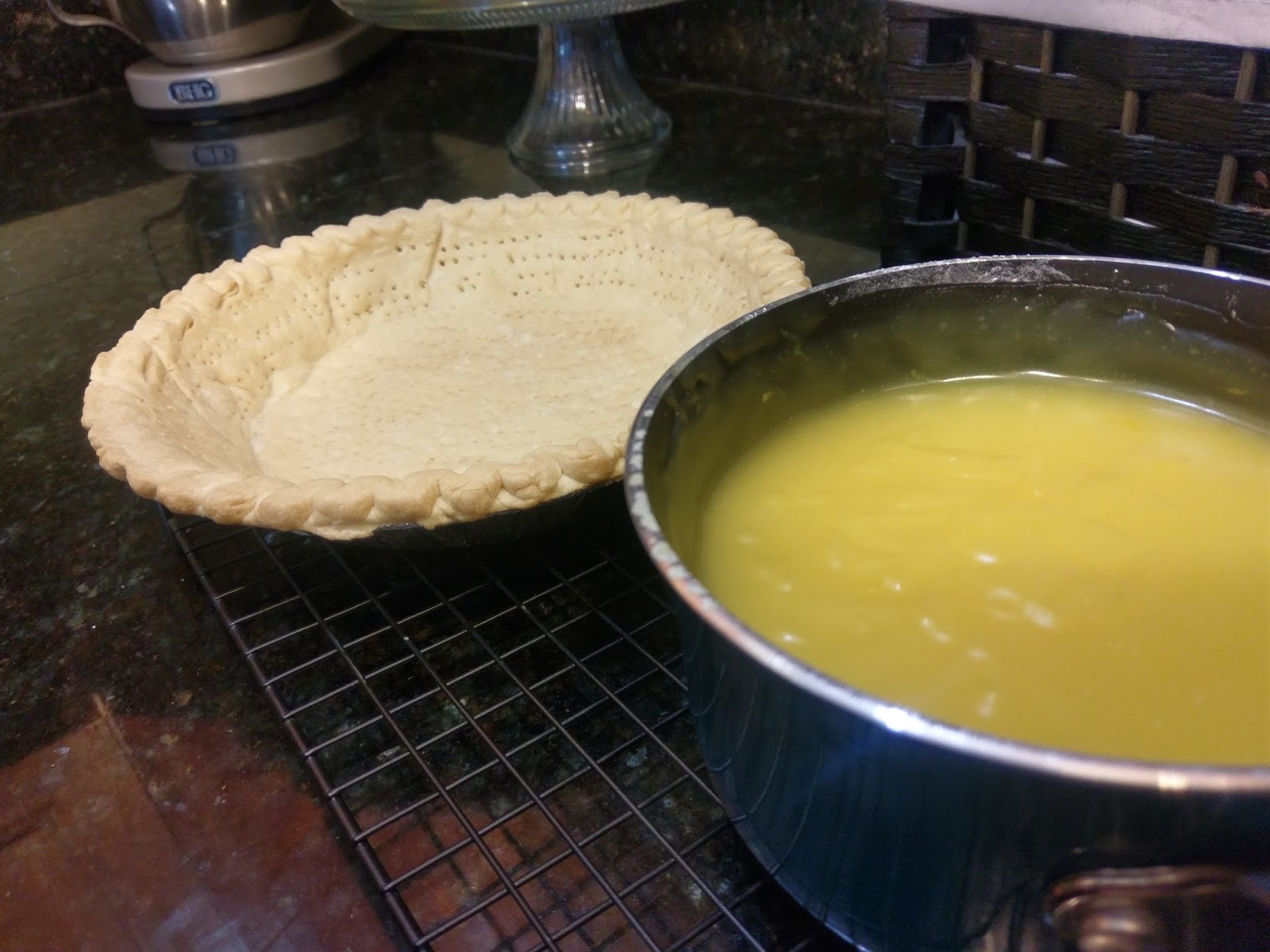 Yep, starts with a premade crust. The lemon filling is a little labor intense, so I cut a corner here. I don’t have a deep dish pie tin because no one has bought me one yet (Hi, Mom, Christmas, maybe? 😀 ), and this pie definitely requires a deep dish. To prepare your crust, simply follow package directions on thawing and bake time/temp. Once cooked to your liking, set on a cooling rack to *completely* cool before putting filling anywhere near it. I’m watching you. Like Roz from Monsters, Inc. Always watching…