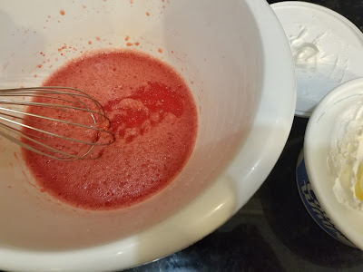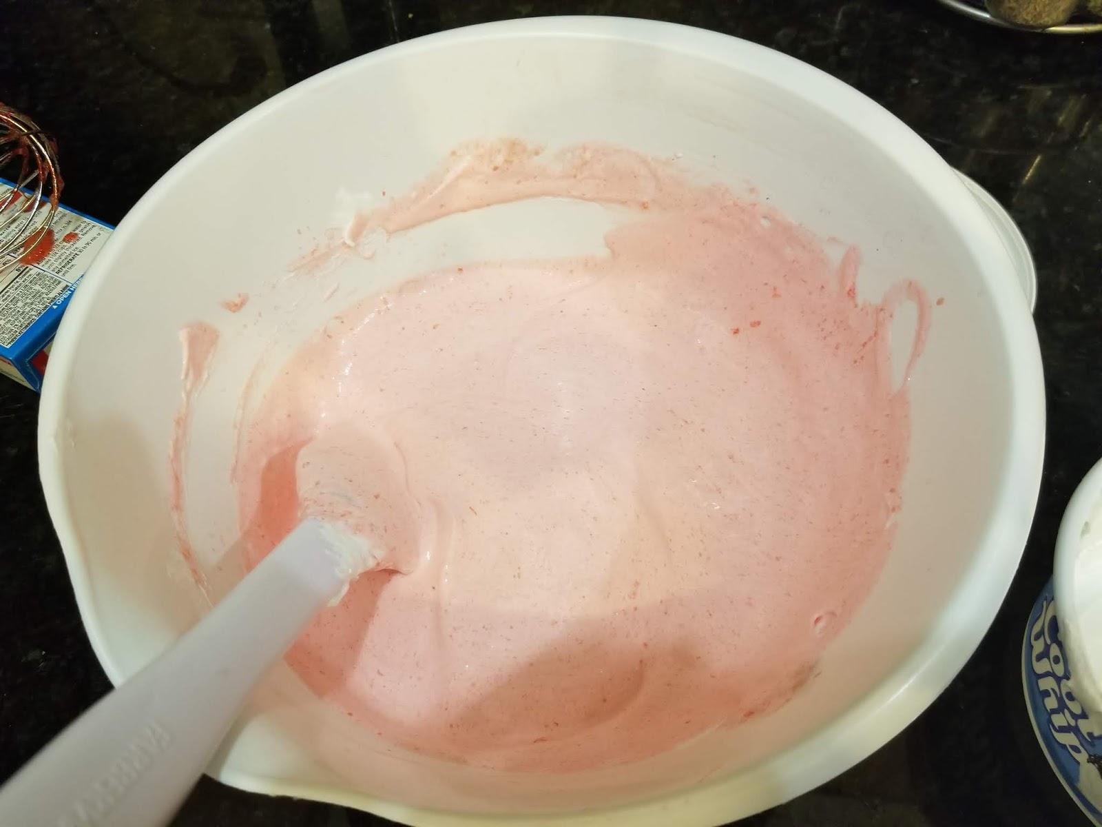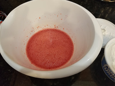 | Mix in the Cool Whip until you have a beautifully smooth, pink bowl of pie filling. |