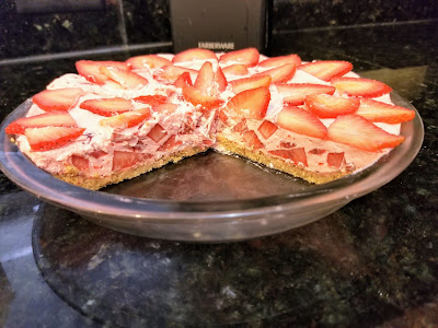 It’s a strawberry cream pie, but I’ve been referring to it as a strawberry dream pie because: 1. I am a huge dork, 2. Not only is it a fantastic combination of light, airy filling, but it also packs a nice blend of tart, sweet bite from the strawberries, and 3. Because it’s only 129 calories a slice. A friggin’ steal! I mean, you could eat half the pie in one sitting if you wanted to and still be better off than eating that one so-so hamburger at your neighbor’s backyard barbecue. Also with the added bonus that this pie doesn’t require you to stand anywhere near an open flame when it’s 6,000 degrees out while making lame jokes about someone leaving the heat on outside. Stay inside, enjoy air conditioning, eat pie, and thank yourself for being able to avoid pretending to like people for another day. That’s pretty much what the weekend is made for anyway, right?