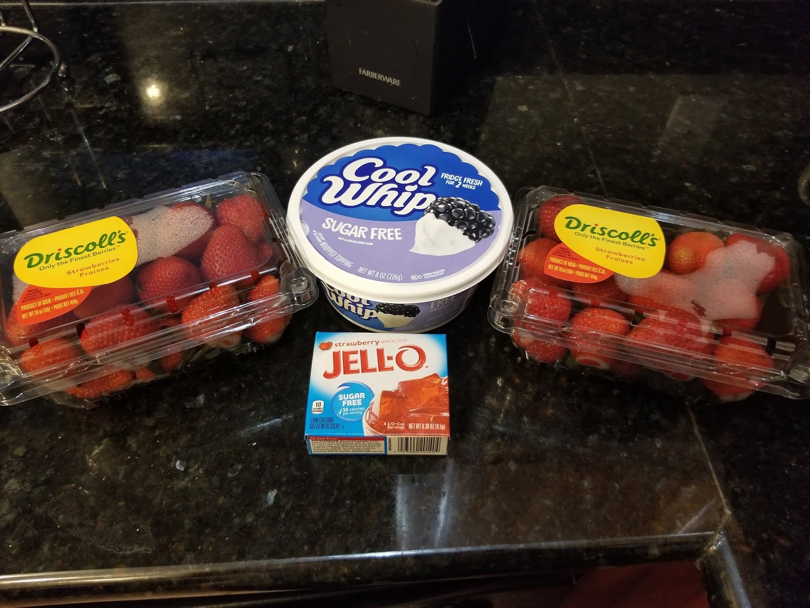 - 1 small package (0.3 oz) of sugar free strawberry Jello