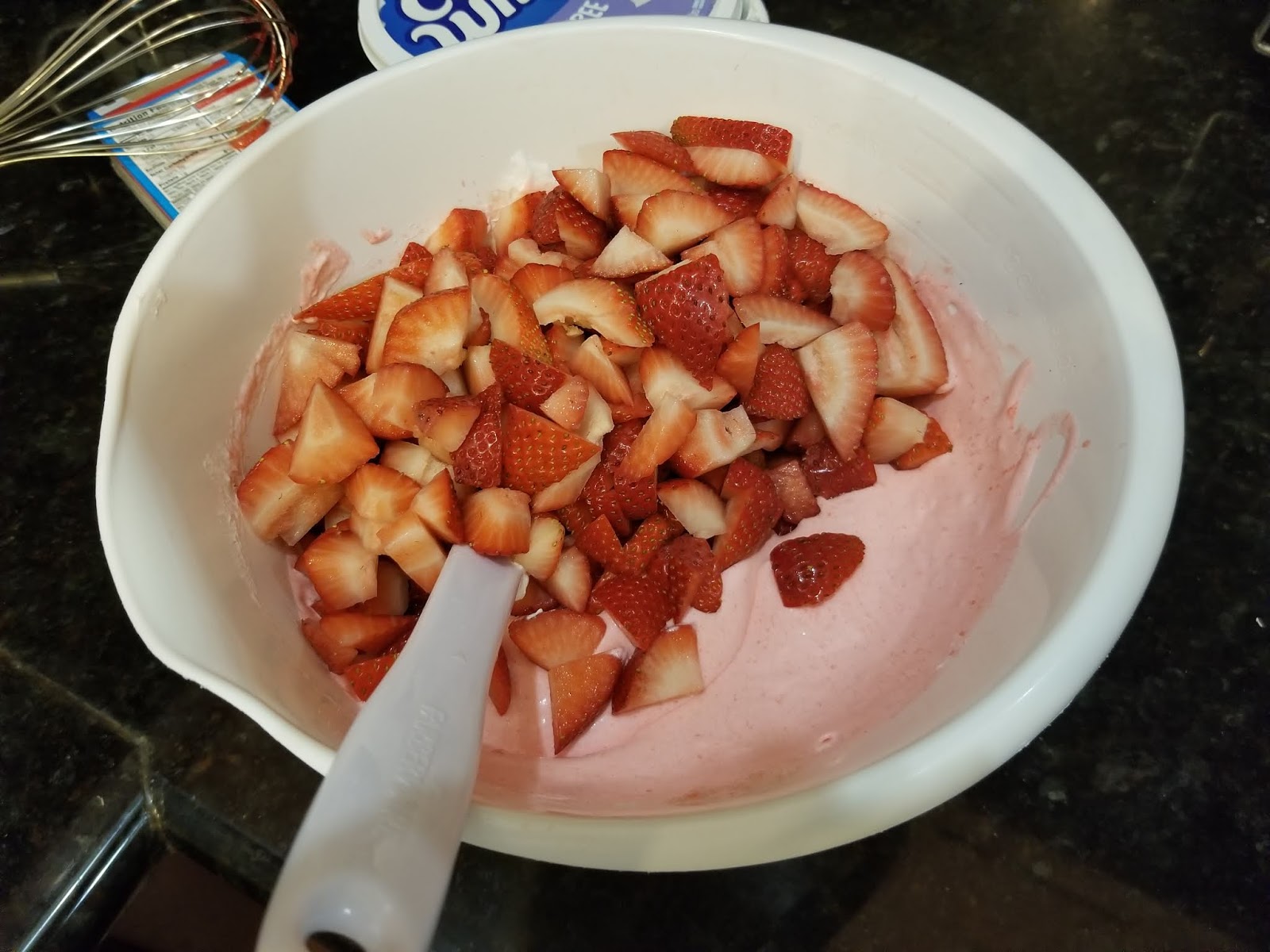 When I poked my mixture with a whisk after ten minutes of setting, it was nice and firm. The whisk didn’t sink to the bottom of the bowl, and the Jello gave some resistance (futile!). Now, we’re ready for Cool Whip. Then again, we’re never not ready for Cool Whip during summer, really.