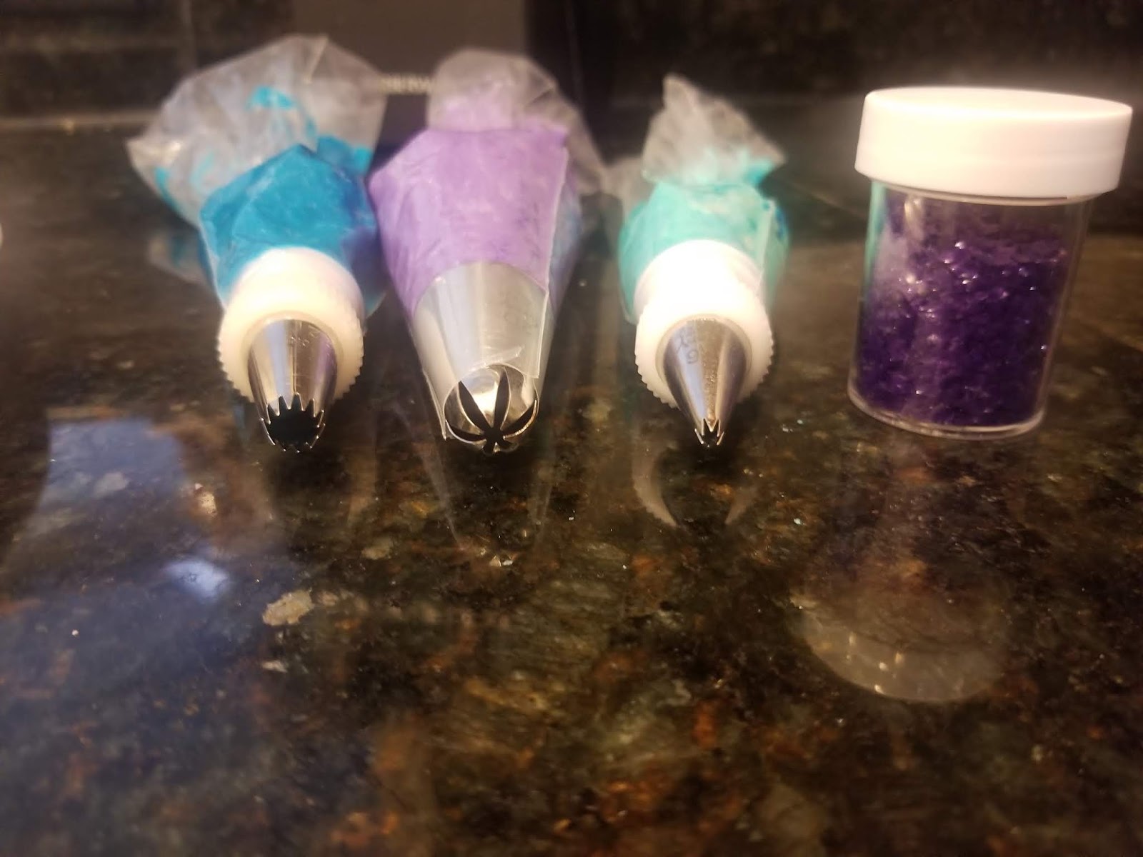 I placed my remaining frosting into three bags fitted with piping tips: