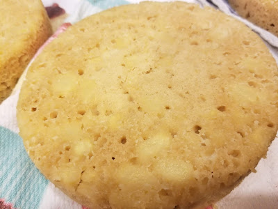 Mix together the cake mix, egg whites, soda, and cider packets for 2 minutes on medium high. Fold in the chopped apples by hand. Pour the batter evenly into your prepared pans (don’t forget the bake-even strips!), using the back of the cake box to tell you how long to bake based on the size of your pan. I baked mine for 28 minutes in 6-inch pans.