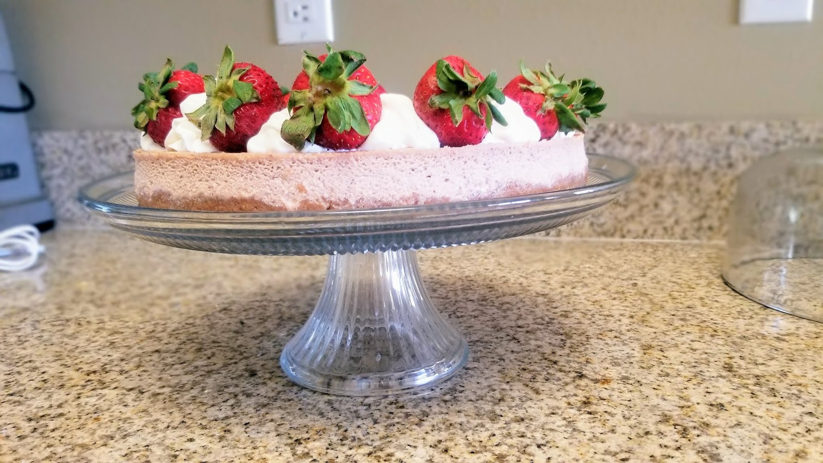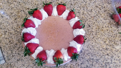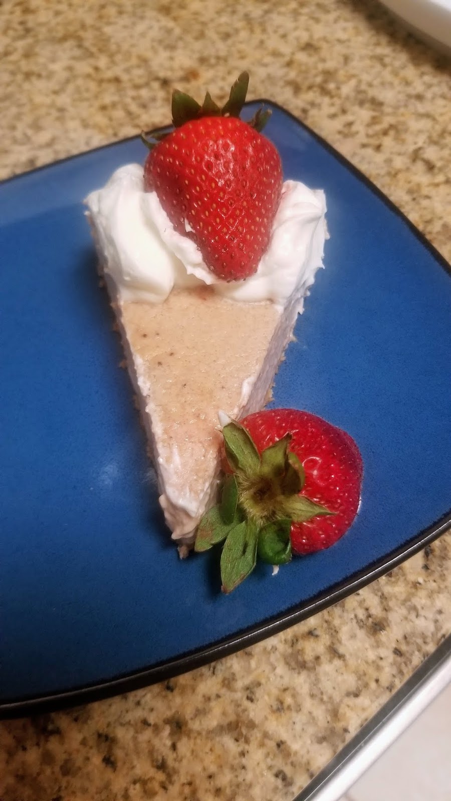 I finished by quartering a lime slice, piping a few mounds of Cool Whip in the center of the cheesecake, and fitting the lime slices in between the spaces. Although not a cherry on top, a final strawberry did assume this position.