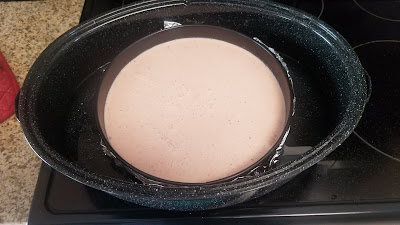 Once totally cool, you need to prepare your pan for a water bath by giving it a tinfoil hat…nothing about cheesecake makes sense, so you need to bathe them as you bake them. I used like 3 layers of foil but somehow water STILL got into the bottom of my pan, giving me a soggy bottom, which although unfortunate, still tastes awesome. Next time, I will use a crockpot liner on the outside of my pan and THEN wrap it with foil to keep any water from the water bath from seeping into my crust from the bottom of the pan. Crockpot liners are absolutely amazing and possibly even the answer to world peace, I’m almost sure of it. Definitely the answer to non-soggy bottomed cheesecakes, anyway.