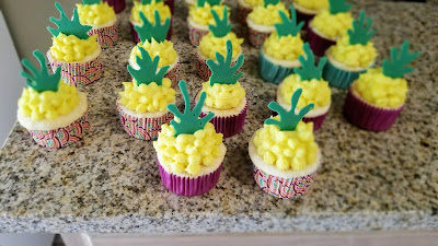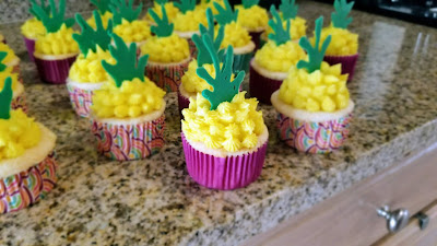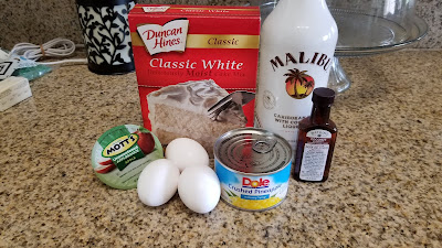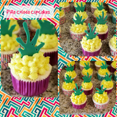 Preheat your oven to 350 and line two muffin trays with cupcake liners. Mix together cake mix, whites, applesauce, pineapple juice, rum, and extract for 2 minutes on medium high. Fold in the crushed pineapple by hand.