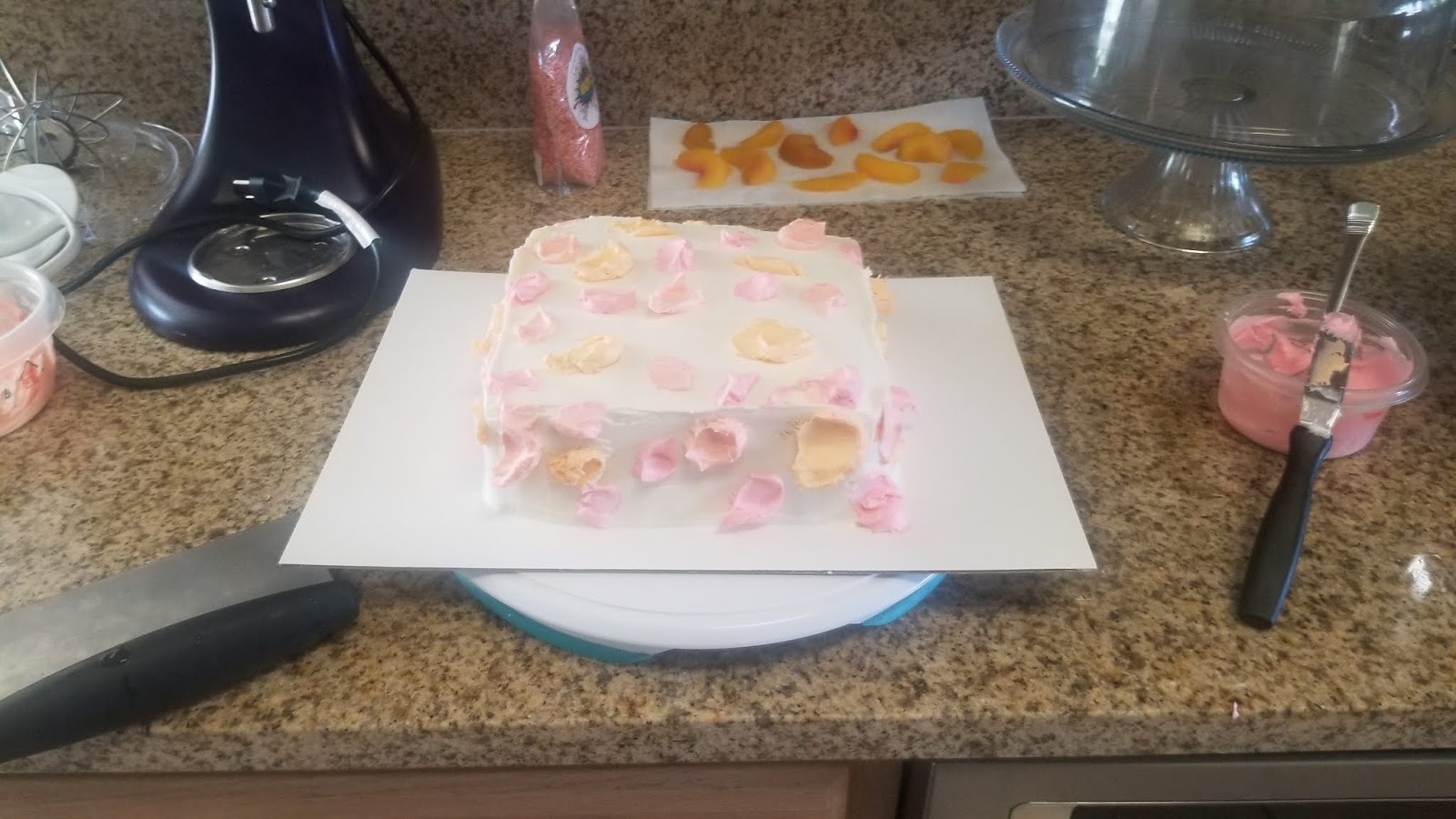 | It takes it from a pretty cute cake to a pretty awesome cake…you might say, it’ll leave people s-peach-less when they see it. What? You want a peach of me? I’ll make terrible peach puns all day, people. |
