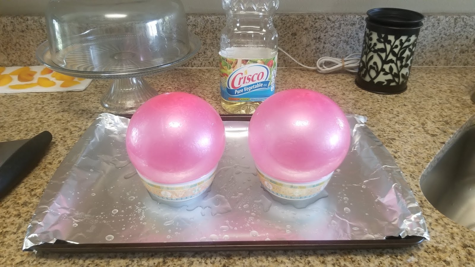You will need to grease the bowls that will hold the balloons before you put the water-filled balloons into them. My second mistake was using vegetable oil. It refused to let the candy mix stick to the top of the balloon the way it needed to, so the base of the bowl was incredibly flimsy. The first time, I used olive oil and it was perfectly strong. You really want to grease the sides and bottom of the bowls you’re using so the candy mix doesn’t cement to it. I really recommend using a ceramic bowl to also help with this–my bowls weren’t ceramic and I had to chip away to get the candy to detach.