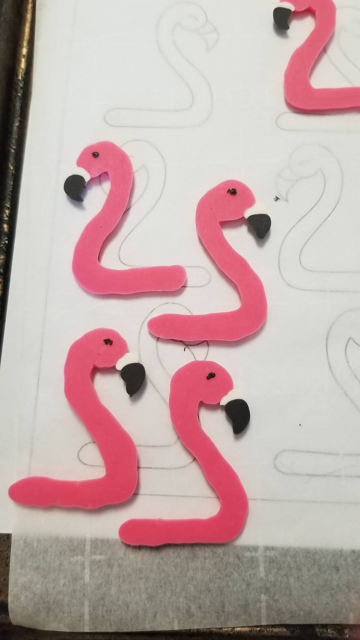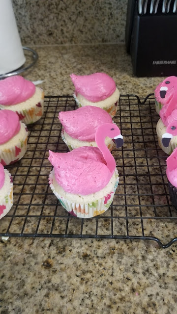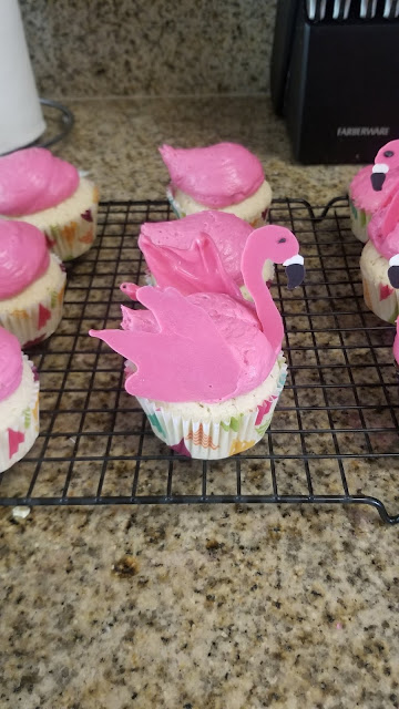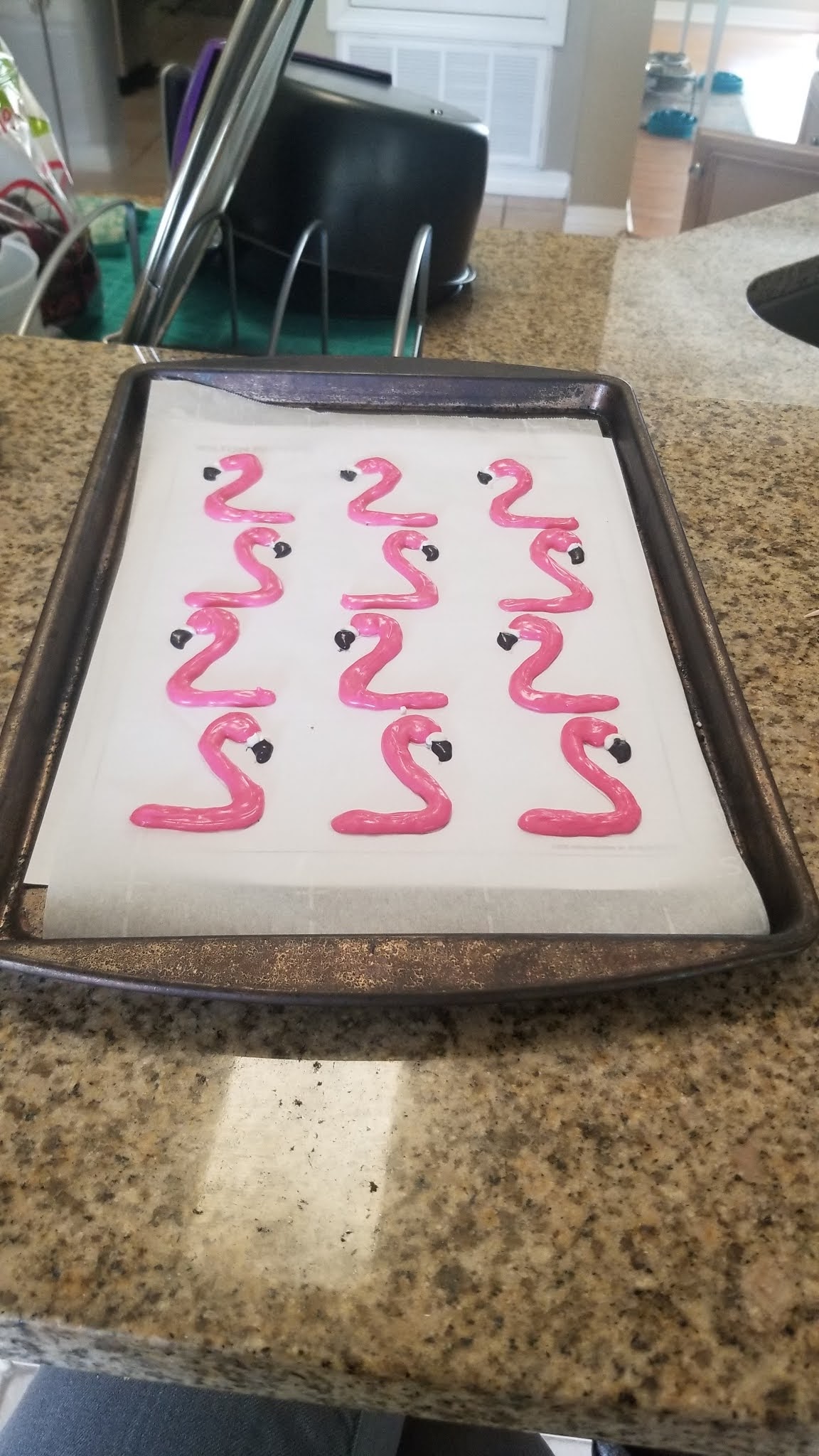 Let these rest in the pan on a cooling rack for 5 minutes. Then turn out to completely cool while you make your flamingos and frosting.