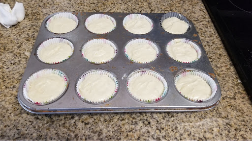 The most difficult part of this recipe is zesting the fruits. Seriously. Preheat your oven to 350 and line a muffin tin with cupcake papers. In a stand mixer, whip the butter, Swerve, and zests on medium-high until very fluffy, about 3 minutes. While this is mixing, in a medium bowl, stir the flour, baking powder, baking soda, and salt together. In a glass, mix the tequila, milk, and fruit juices together (don’t drink this, it will ruin your life). Let this curdle for 5 minutes. Don’t worry, it’ll come back together later.