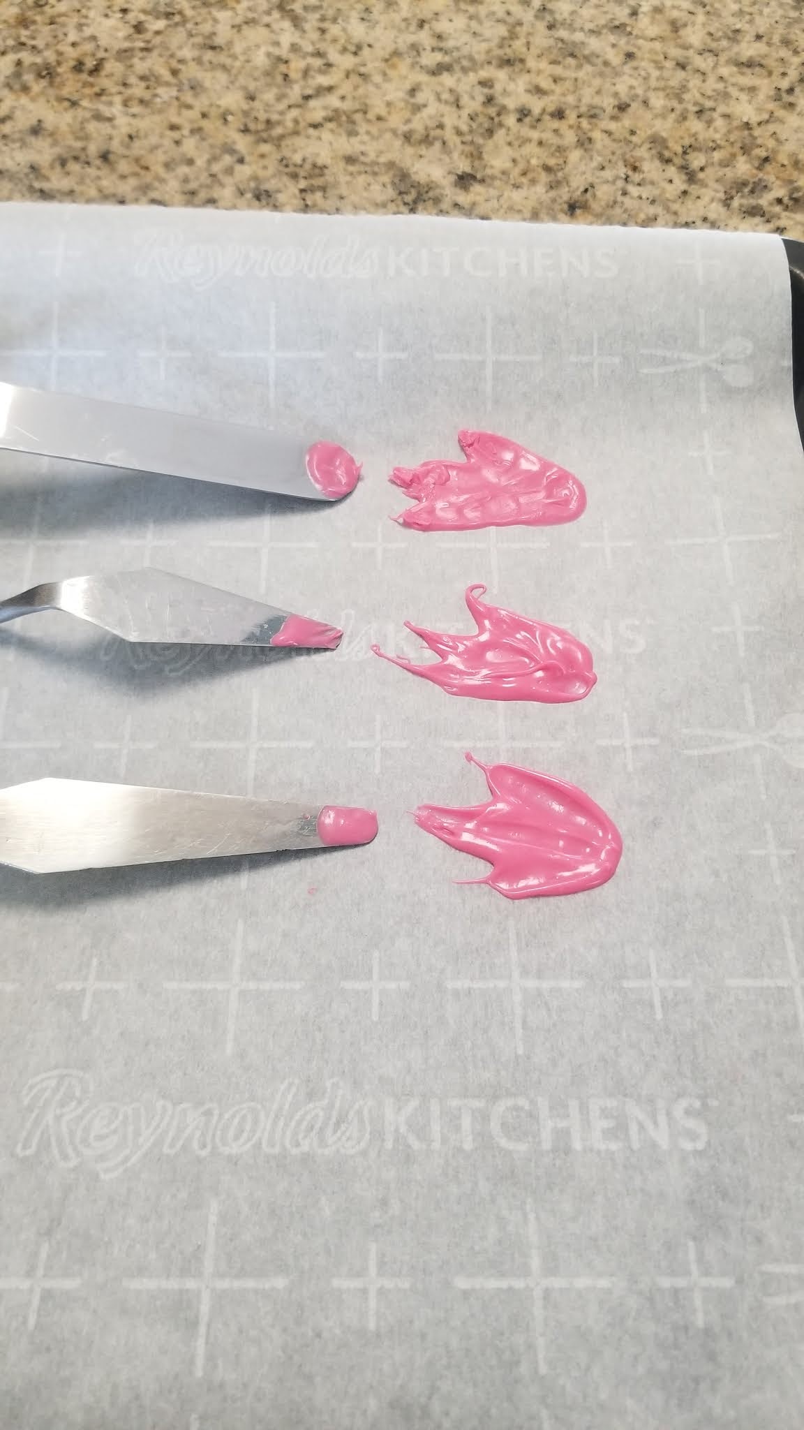 | This is the difference between the shapes an angled spatula and smaller palette knives will give. I went with the palette knife on the bottom for the rest. |