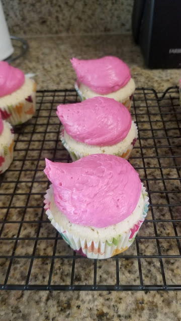 I used about 6-7 drops hot pink, and 4-5 drops of regular pink to achieve this. This will also make enough frosting for 24 cupcakes and not 12, so you can freeze the leftovers or eat the frosting straight out of the bowl. It is divine, so don’t share if you don’t have to…