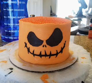 Much like Oogie, I used an X-acto knife and a template on Parchment paper to create Jack’s face. I found this pumpkin carving template online, resized it to fit my cake (I used Canva to resize it, but you could copy and paste into Word or Paint and scale the size up or down as needed), and with the help of my X-acto knife and a cutting mat, I cut out what was needed: