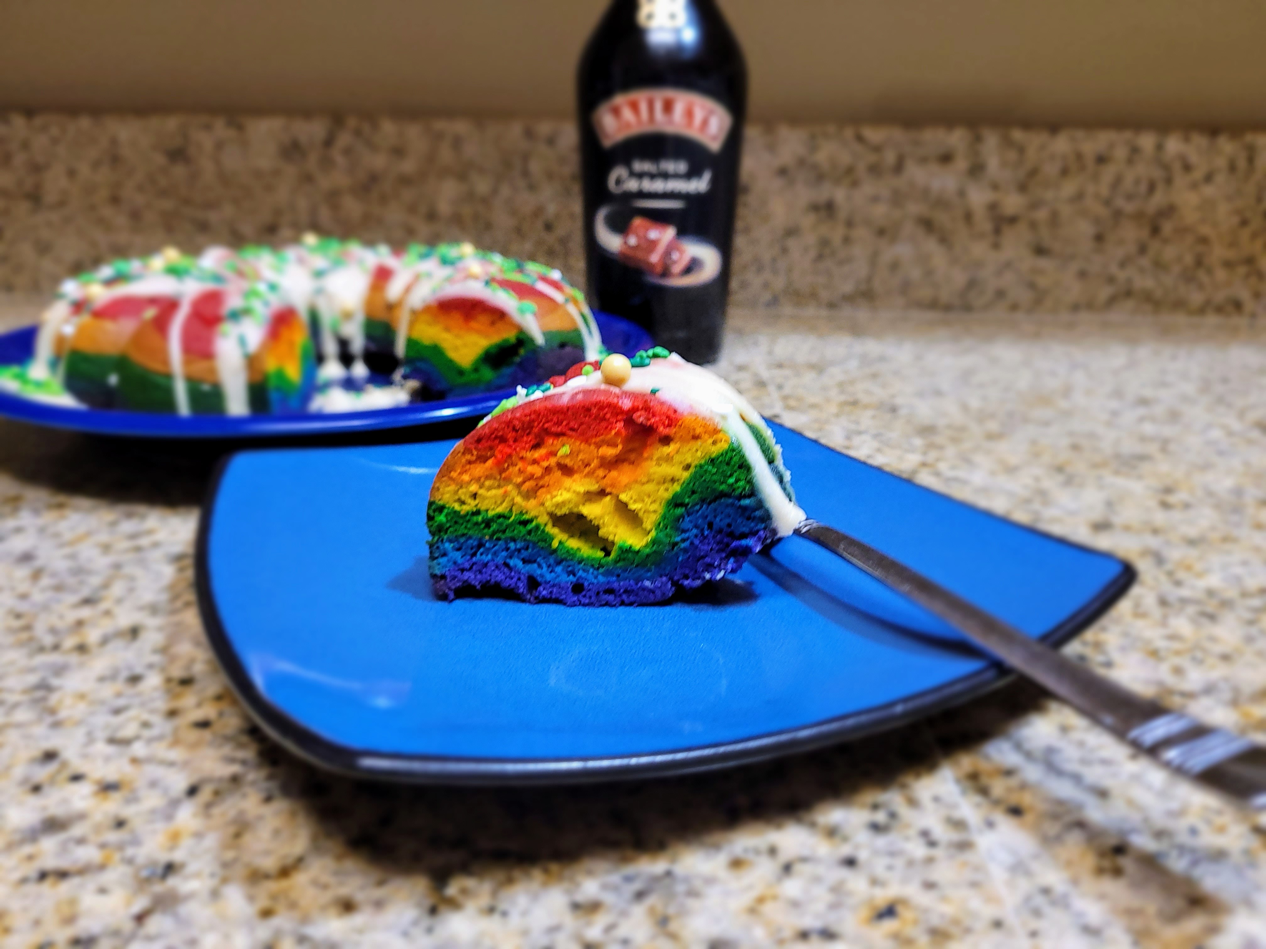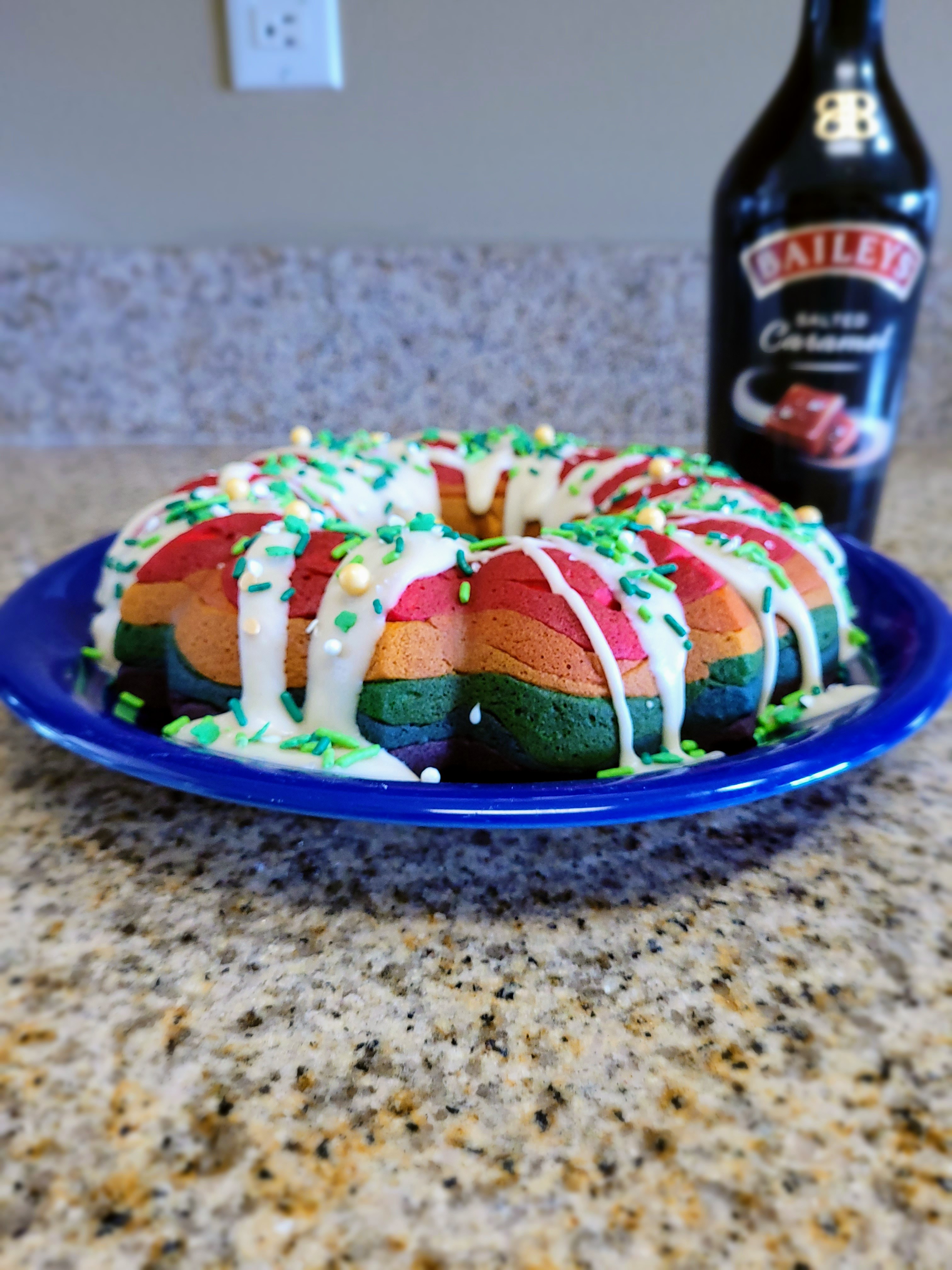 If you ever wanted to eat a piece of cake whose pure existence just radiates joy and flair, this is definitely the cake for that. I realize most rainbows lead to a pot of gold, and in 2021, I hope that pot also contains a COVID vaccine so we can get back to regularly scheduled St. Patrick’s Day shenanigans by 2022. At least I have this cake to help me cope with being a shut-in for a while longer! Anything that tastes of salted caramel Baileys in each bite is a blissful escape from reality. That glaze is nice and sweet but finishes smooth and rich thanks to the Baileys, and it’s a nice little kick of flavor paired with the cake itself. It may be a dense bake, but that makes it no less delicious! I’m definitely making this again because Baileys makes everything better. I hope however you’re celebrating Saint Patrick’s Day, you’re safe, happy, and full of Baileys cake. ‘Til next time, my fellow eaters!