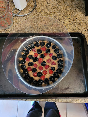 I just used blackberries and raspberries to make little concentric circles. I pressed my fruit in the top of my cheesecake firmly, but my raspberries were not heavy enough to keep from floating away when I added the gelatin on top. My blackberries were HUGE, so the gelatin layer didn’t cover them completely either. Should have cut them in half. I was SUPER frustrated to watch the actual fruits of my labor go floating away during the final step of this cheesecake. But, when in Paris, do as the Parisienne’s do, complain about it and then take a nap.