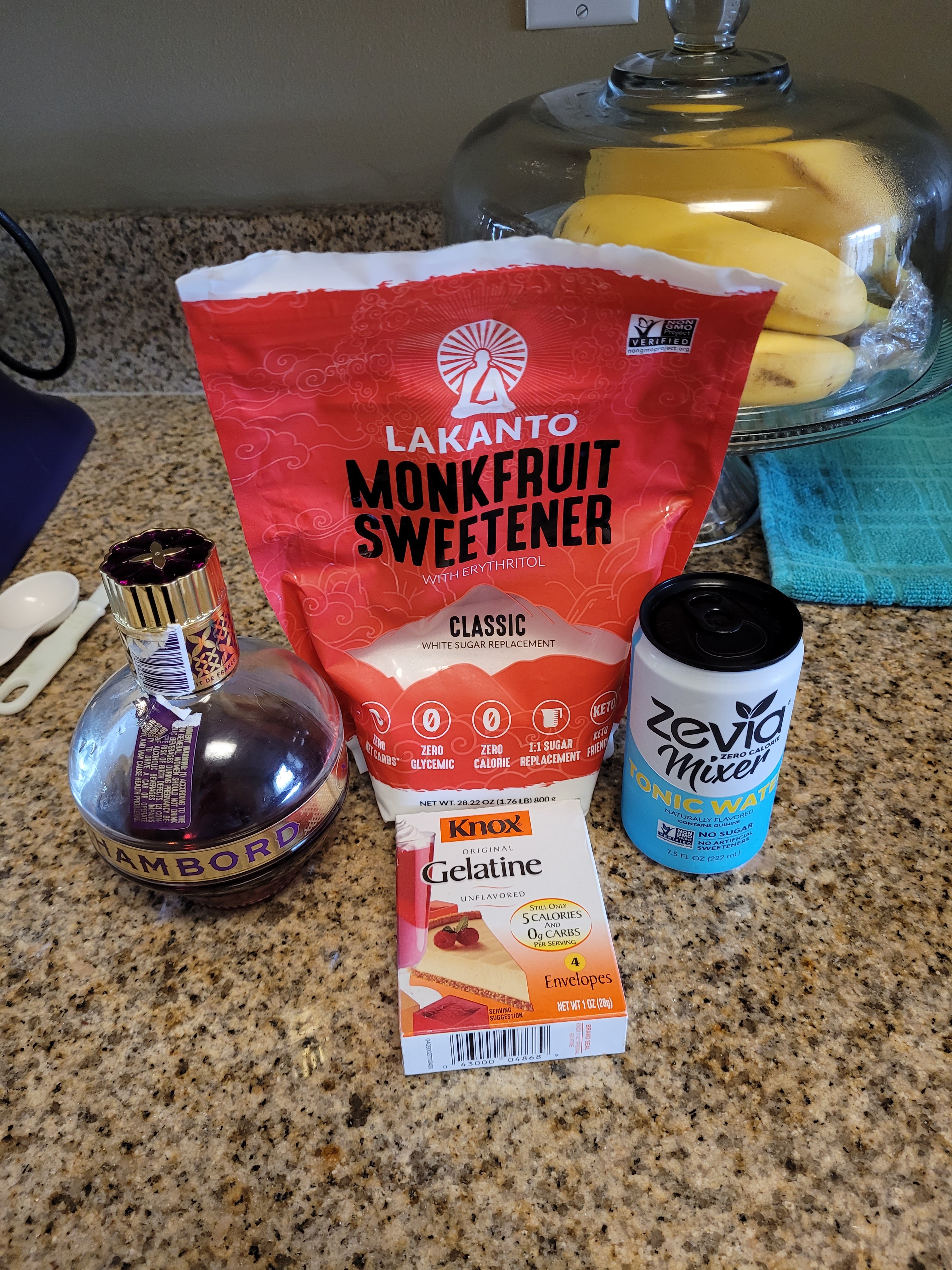 - 3/4 cup of soda water, tonic water, regular water, sparkling wine, sparkling fruit juice, your choice. I used Zevia calorie-free tonic water.