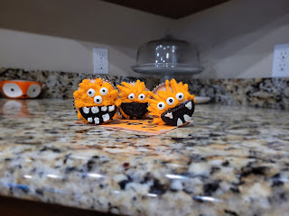 I very much so had to make a Mike Wazowski monstercake because he is my all-time favorite monster. I also made his apparently inbred three-eyed cousin and tiny pupil-ed sibling.