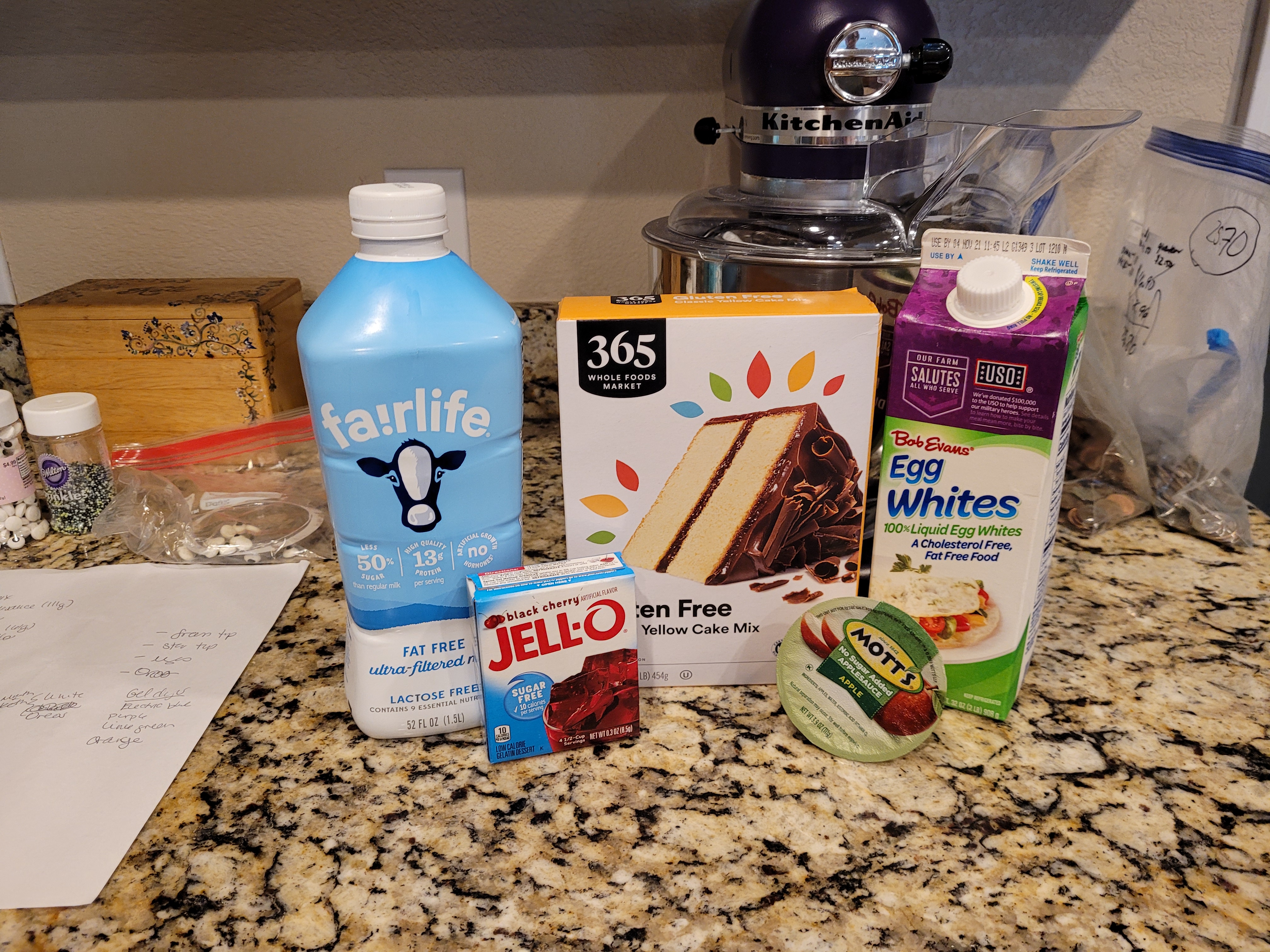 - I box of sugar free black cherry Jell-o mix (10 grams of Jell-o powder)