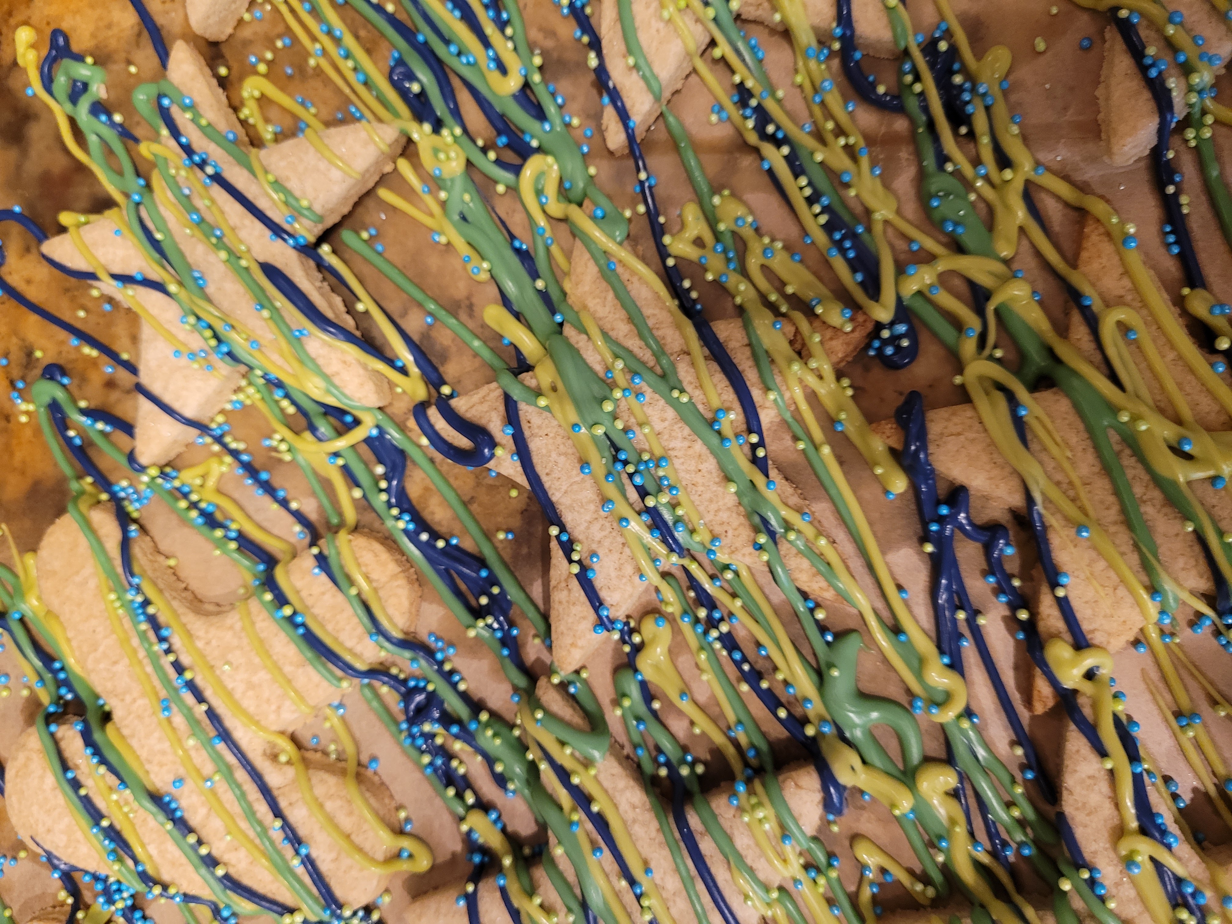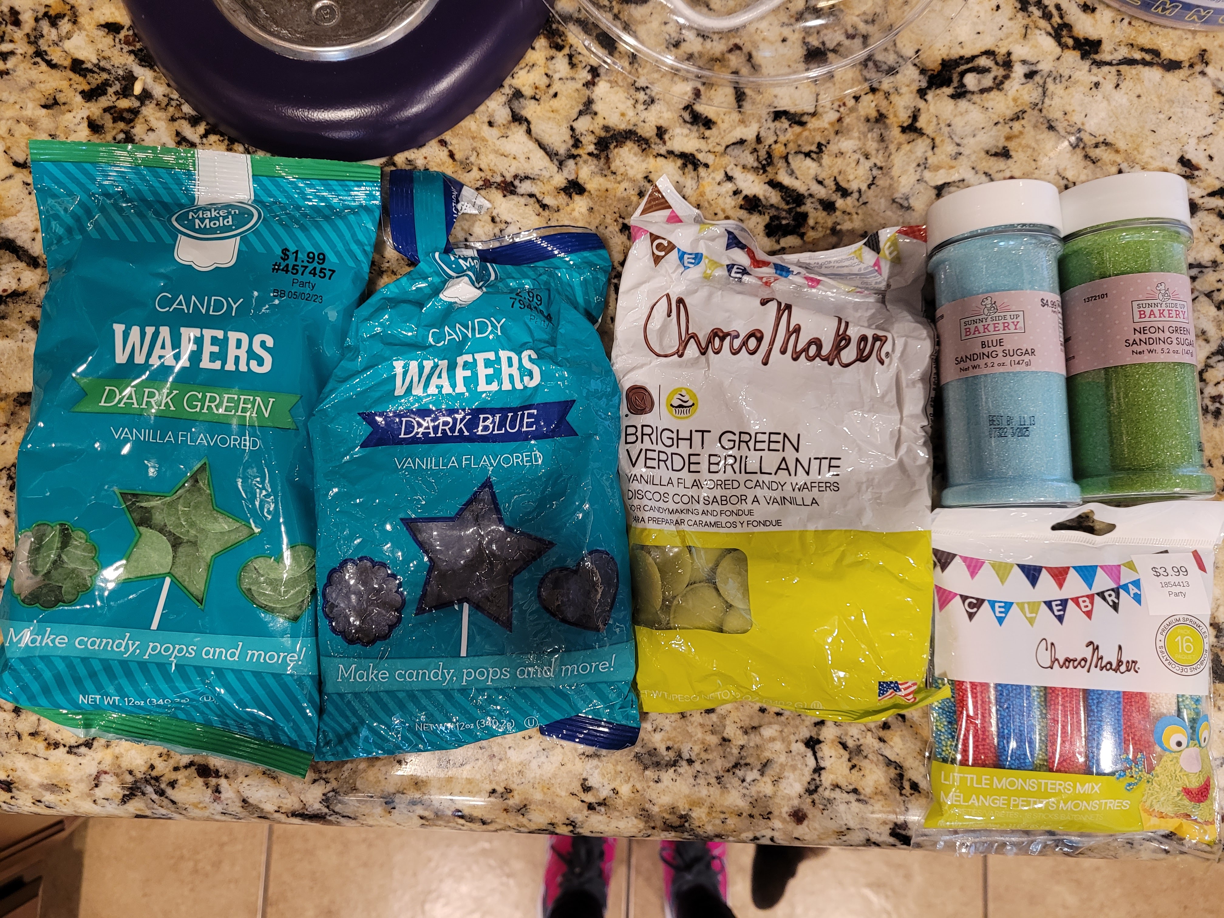 For the chocolate drizzle, I used green, blue, and lime chocolate melts. You could also just use melted chocolate chips. Or melted Reese’s peanut butter chips to make that Skrewball peanut butter whiskey flavor really shine. I also had an assortment of sprinkles on hand because nothing is finished if it hasn’t been topped with sprinkles. THERE HAS TO BE A SPARKLE! You can’t really put a candle in a birthday cookie, so light these babies up with glittery sanding sugar.
