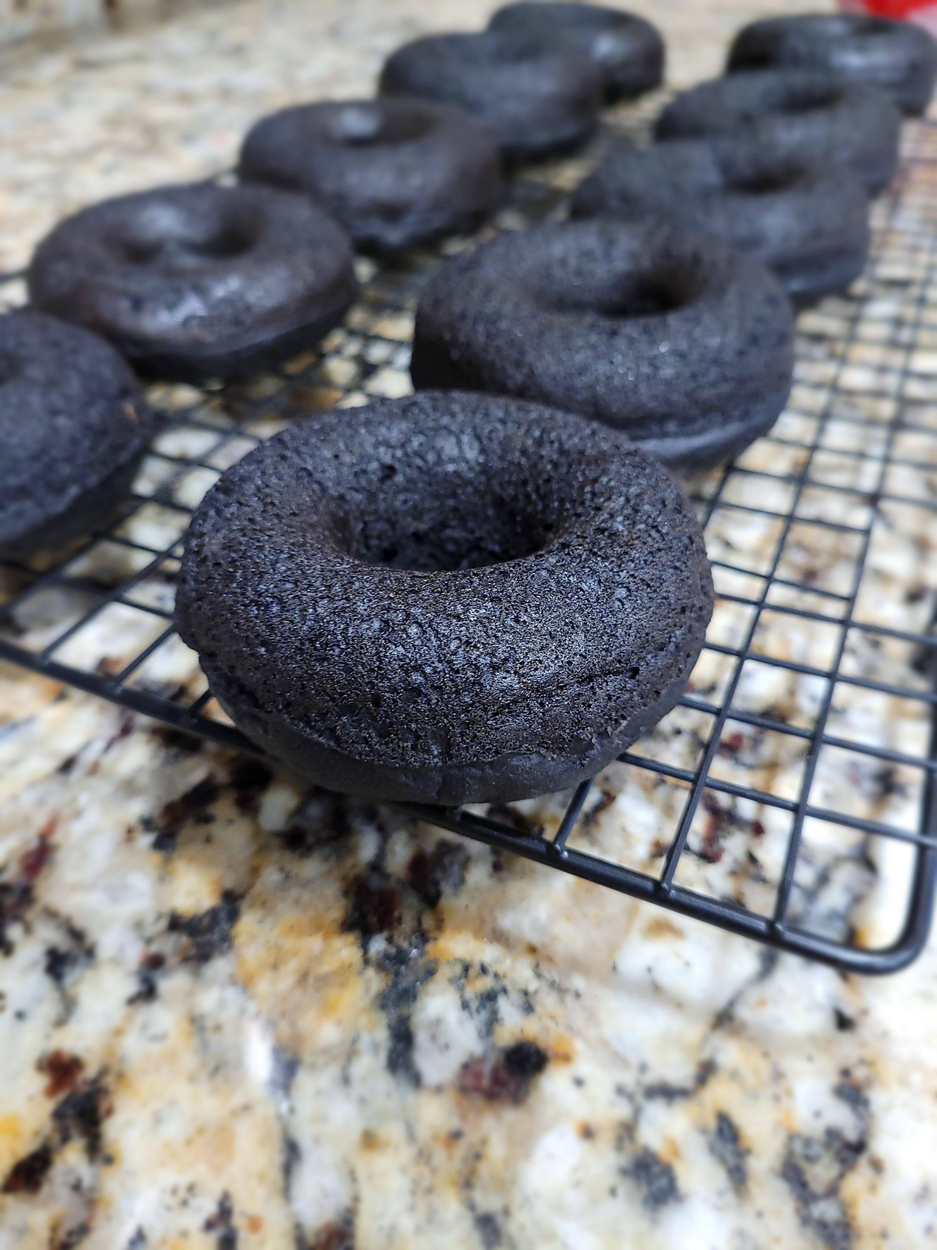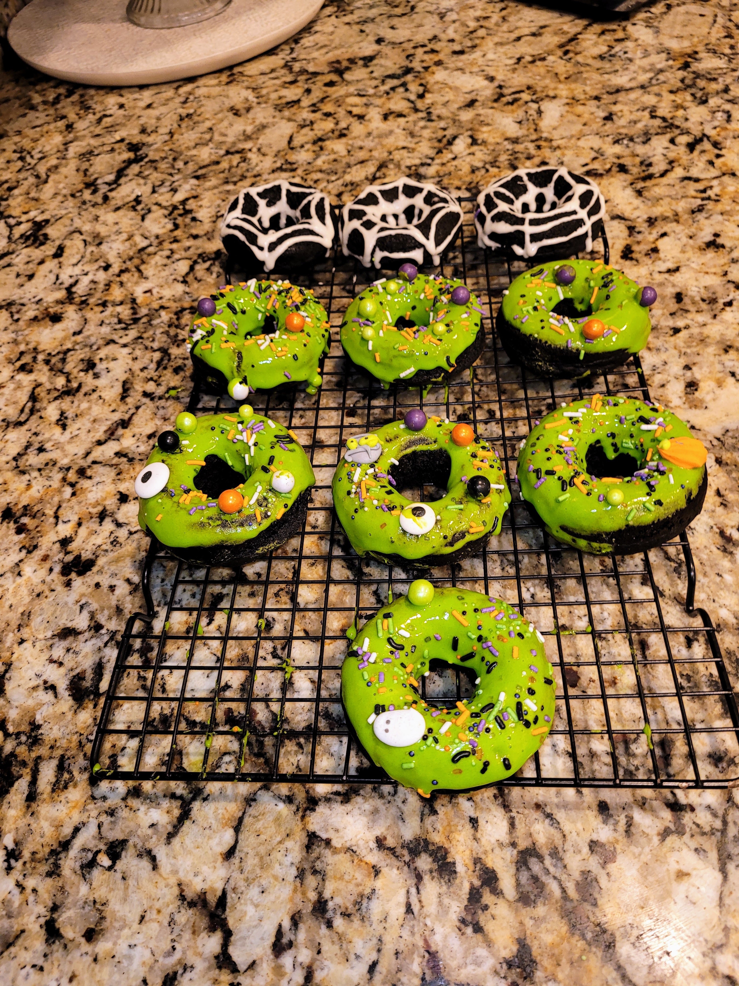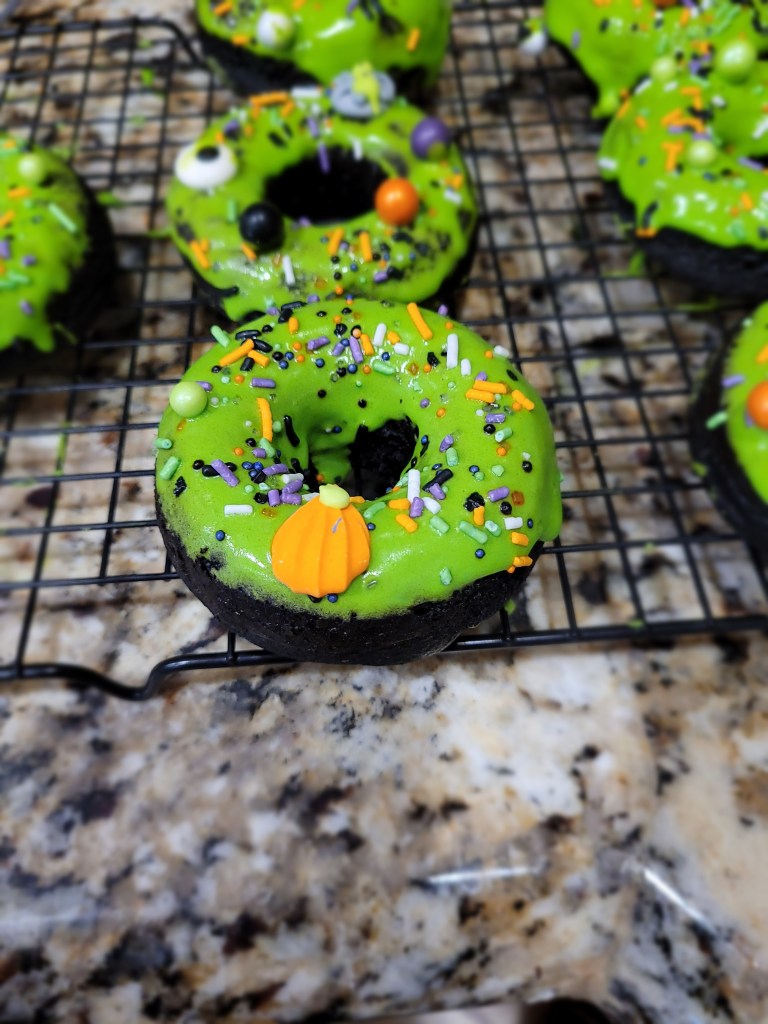 These donuts are best eaten right away, as are all donuts, but given eating nearly a dozen donuts at once is “frowned upon,” keep leftover donuts in an airtight container in the fridge. These reheat very well in the microwave for 10 seconds. I also typically freeze half and save for later; they thaw out great- a Halloween miracle! Anything that black or that slimy deserves to be celebrated; so eat, drink, and be scary for breakfast with these Oreo-adjacent spooky babies. ‘Til next time, my fellow eaters!