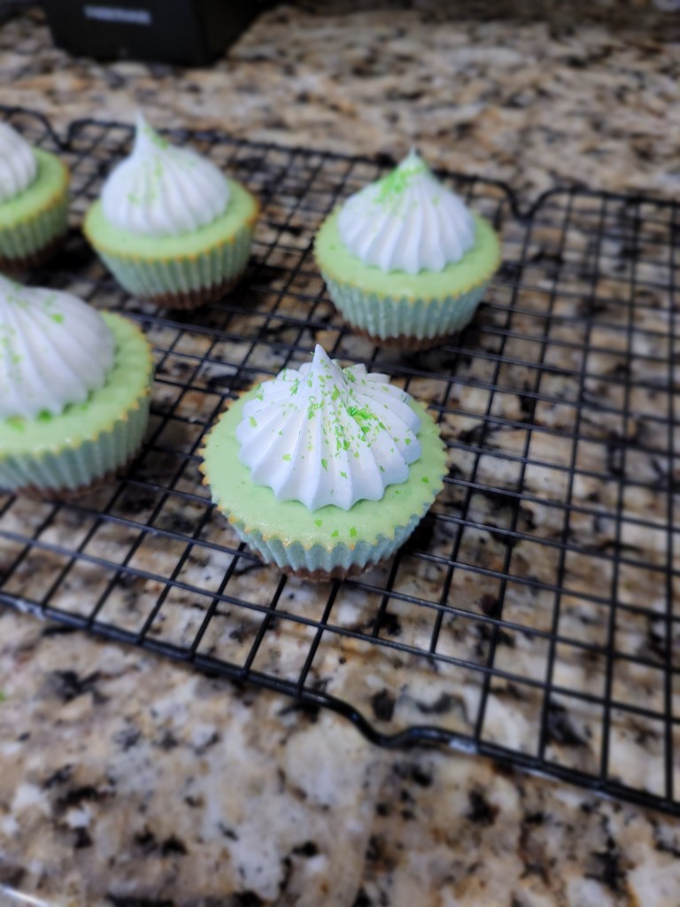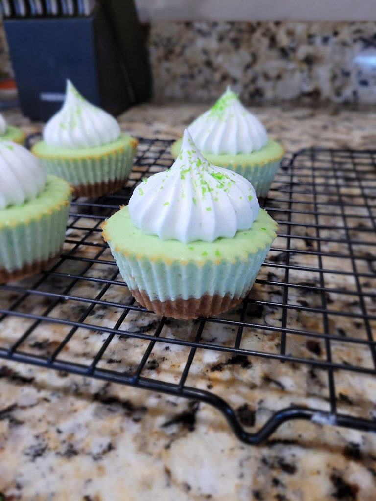 Spring has arrived, and now it’s time to put fruit in all my desserts! Starting off real strong with these mini key lime cheesecakes. They are bursting with citrusy goodness and a nice buttery crust. Bonus- you don’t have to juice 26 tiny limes to make these yummy babies happen either, thanks to some lime Jell-o. These are pretty much perfect additions to any spring events and are so easy to make…at only 133 calories a pop, they’re a guilt-free, amazing dessert option. It’s party lime!