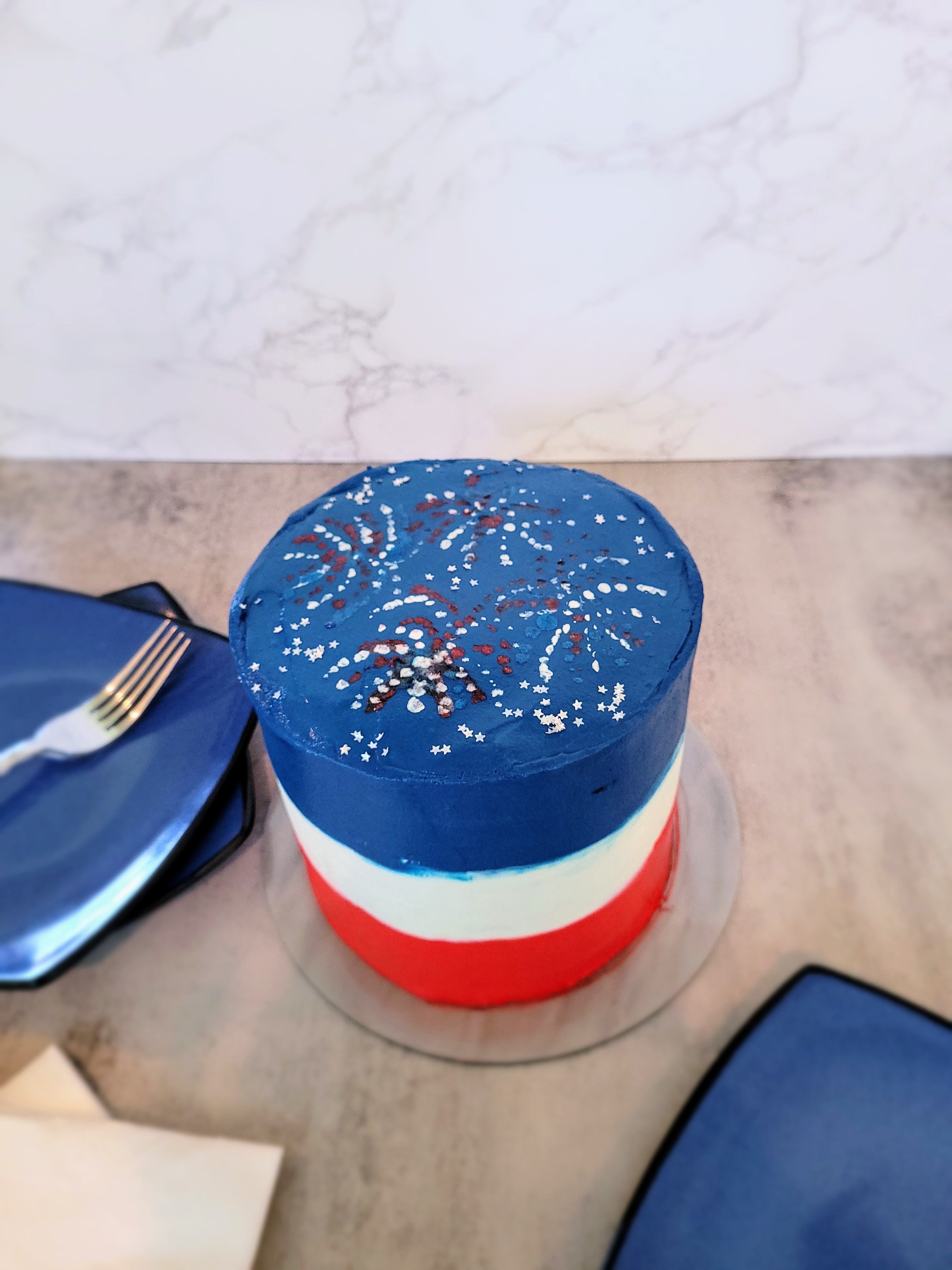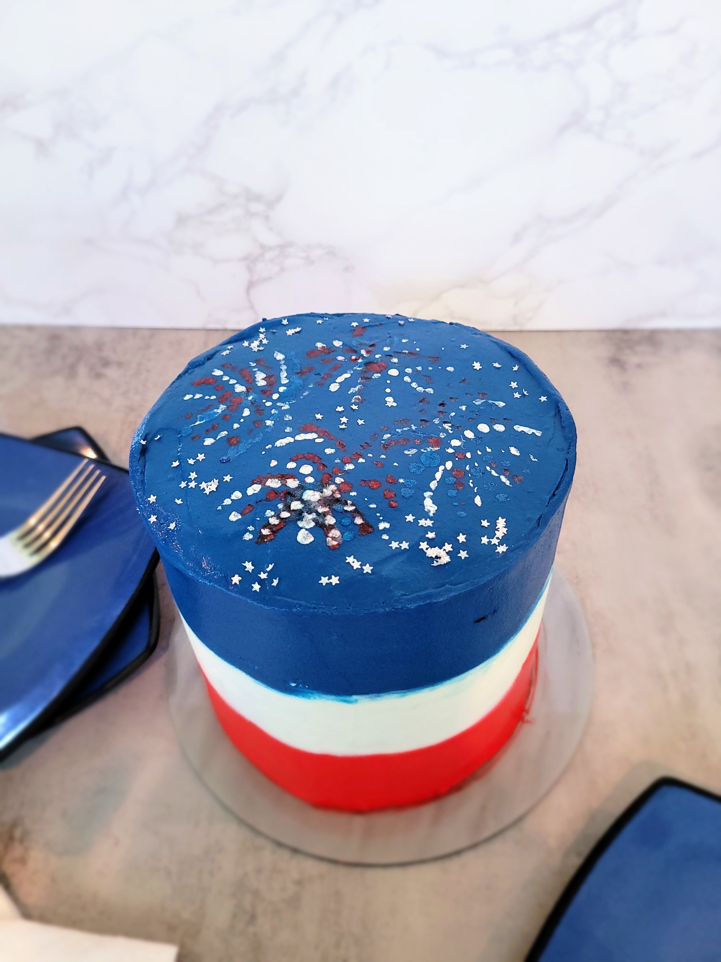June is almost over already? Julyin! Usually, I’m making a birthday cake for my husband this weekend since he’s an end of June baby, but he decided (read: work made him) he’d rather go hang out in the Southern Hemisphere for his birthday, so I was left with no birthday to bake for…except for America’s! It’s been a few years since I’ve busted out the red, white, and blue luster dust, and well, since I have an absolute sprinkle addiction and was probably a sparkler in a previous life, I knew it was time to shine….