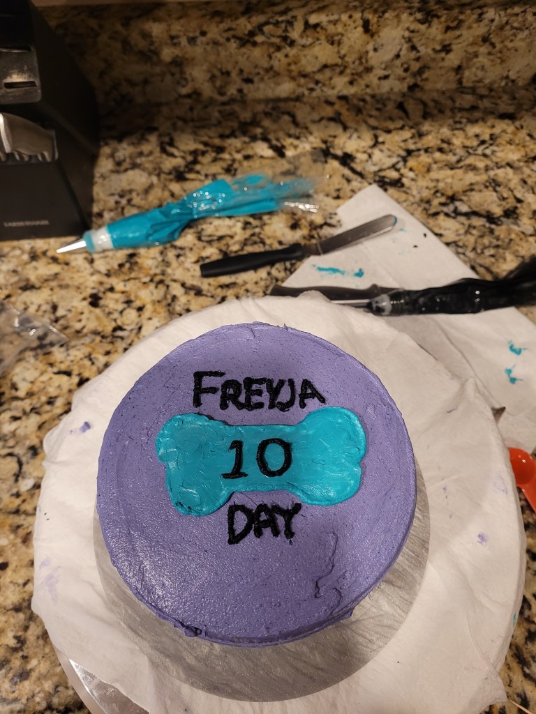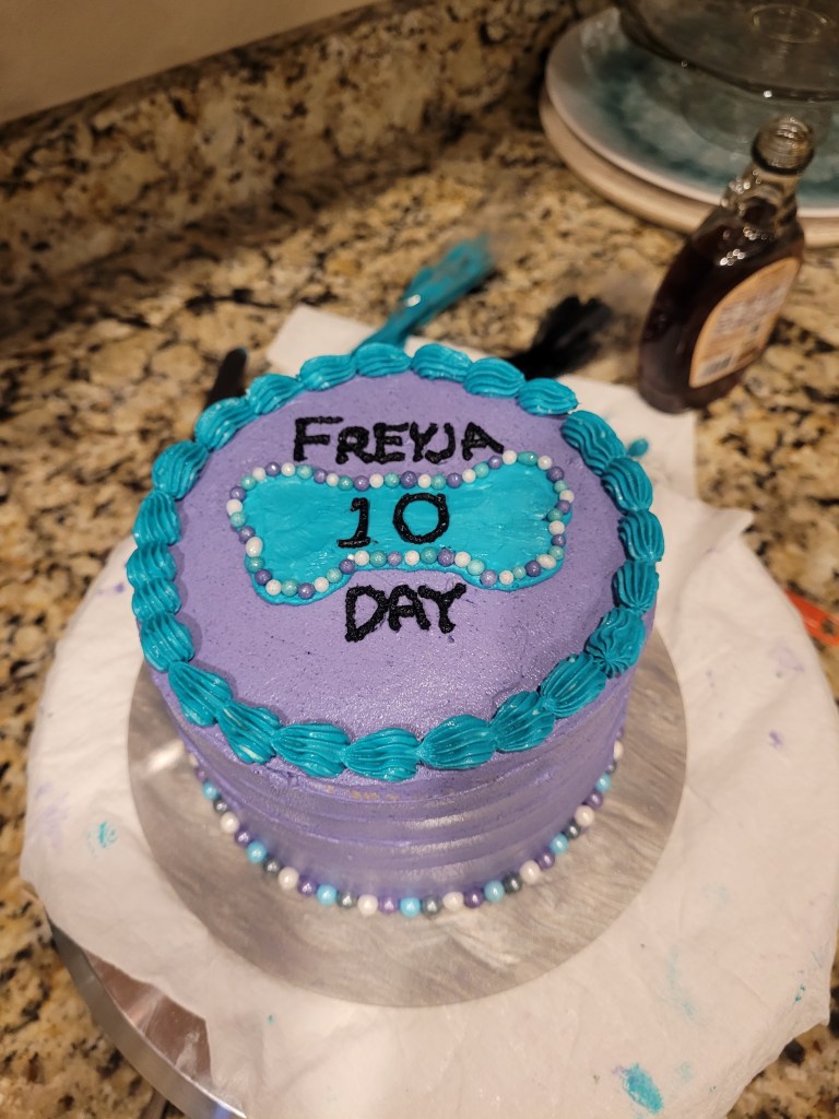 The one thing I wanted most of all my entire life was to rescue dogs that I could spoil relentlessly for the rest of their days to make up for their harsh start on life. Happy to say I have achieved this goal with our pups, Hank and Freyja. Just how spoiled are they? Well, Freyja turned ten on St. Patrick’s Day, so I made her her very own birthday cake…