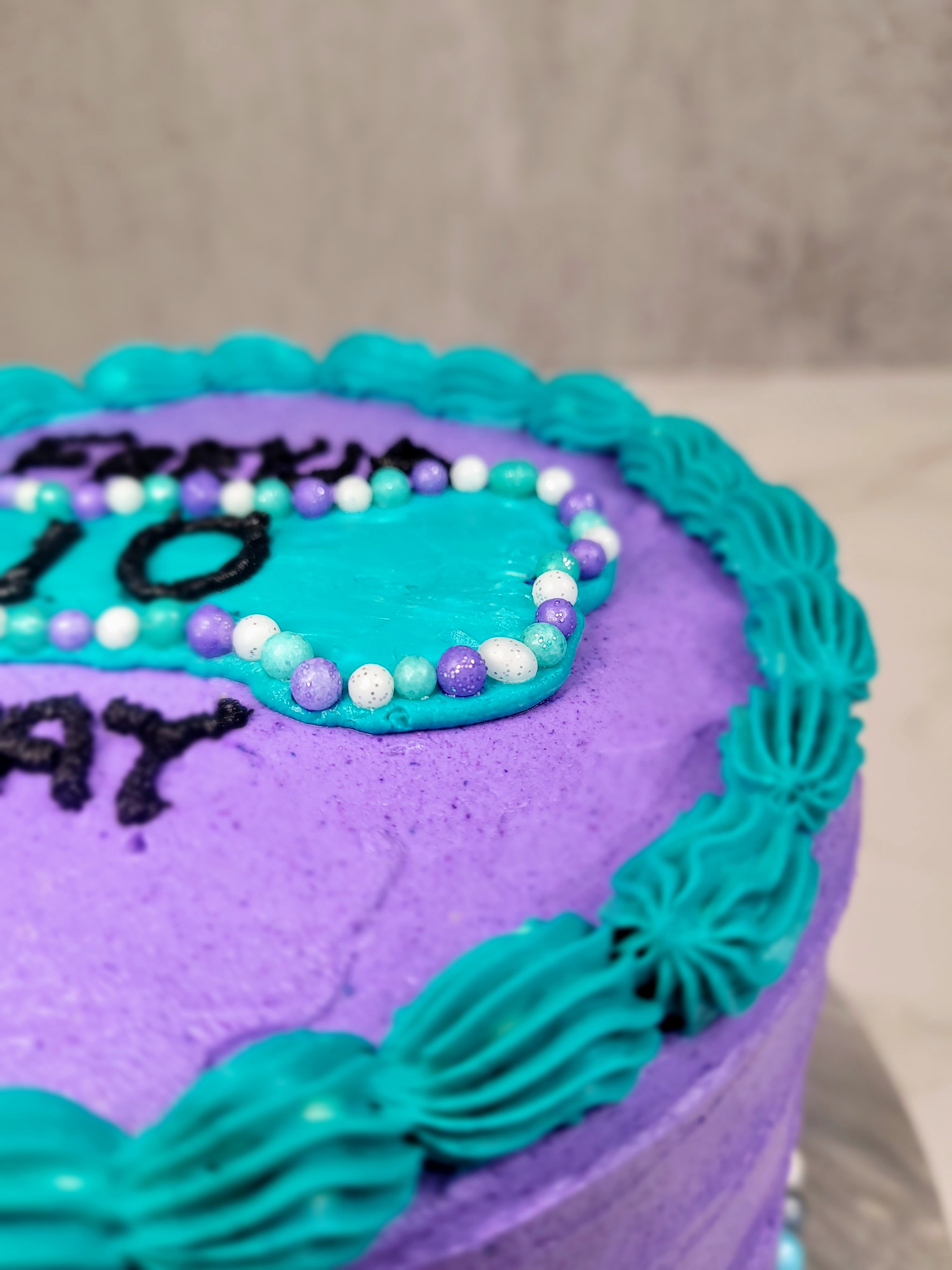 - Place a layer of frosting in between each cake round and frost the entire cake, smoothing as best as you can with an angled spatula and bench scraper.